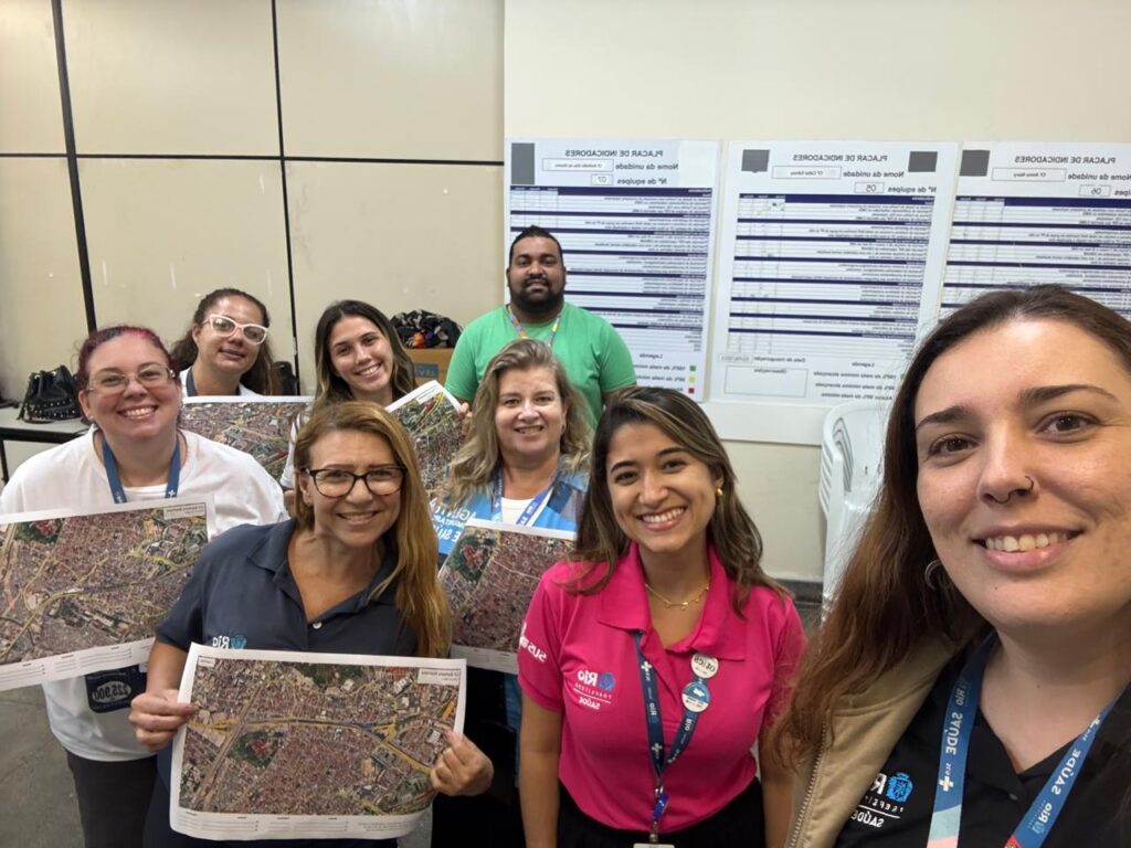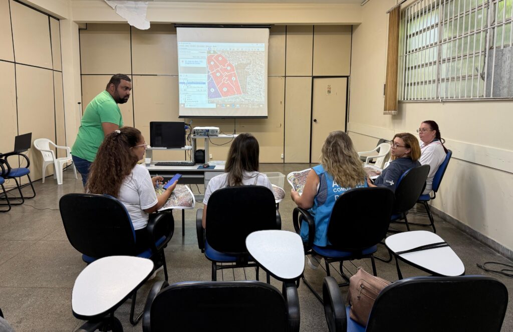 Durante a capacitação foram atualizados os mapas na ferramenta Google Earth Pro com a mediação das integrantes da OTICS-Rio, Fabiane Muniz, Yve Jung e apoio do colaborador da Divisão de Informação, Controle e Avaliação (DICA), Wilson César.