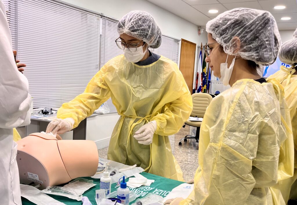 Além disso, os participantes tiveram a oportunidade de realizar treinamento prático em manequins específicos, representando anatomias masculinas e femininas adultas.