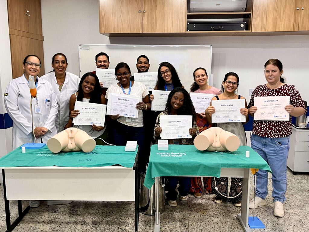 A 4ª Turma do Curso Prático de Cateterismo Vesical no Adulto (PRATICAVA) ocorreu nesta quinta-feira, 22 de maio de 2025, no período da manhã, na Sala Multiuso da Estação OTICS Rio Souza Aguiar. O curso contou com a participação de 13 profissionais de saúde, sendo 7 enfermeiros(as) e 6 médicos(as), lotados nas seguintes unidades: CMS Dr. Albert Sabin; CMS Ernani Agrícola; CMS Sylvio Frederico Brauner; CF Armando Palhares Aguinaga; CF São Sebastião; CF Ivanir de Mello; CMS Carmela Dutra; CSE São Francisco de Assis; CF Sérgio Vieira de Mello e CMS Newton Alves Cardozo.