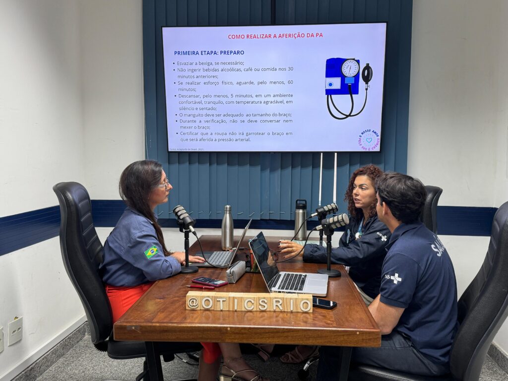 Na tarde desta segunda-feira, 26/05, a sala de podcasts da Otics – Rio Sede recebeu um webinário com foco no enfrentamento da Hipertensão Arterial Sistêmica. O evento contou com a participação do médico cardiologista Rafael Abtibol e da gerente da Área Técnica de Hipertensão e Diabetes, Christiane Guida. Especialistas discutiram estratégias de prevenção, diagnóstico e cuidados contínuos com pacientes hipertensos, reforçando a importância dna rede pública de saúde.