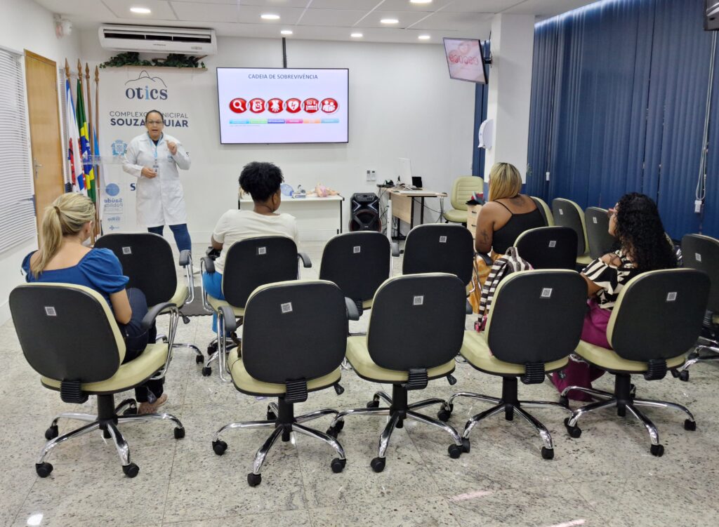 A 46ª turma do Curso de Suporte Básico à Vida em Emergências (SBVE) foi ministrada na manhã desta terça-feira, 27 de maio de 2025, na Sala Multiuso e no Box de Simulação da OTICS-Rio Souza Aguiar. Como fruto da parceria entre a Rede OTICS/SMS-RJ e do Núcleo de Formação Profissional, Pesquisa e Educação Permanente (NUFOPEP/RioSaúde).