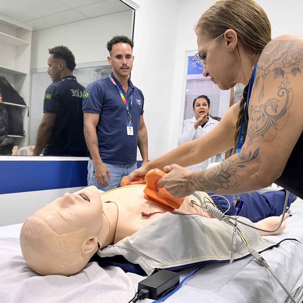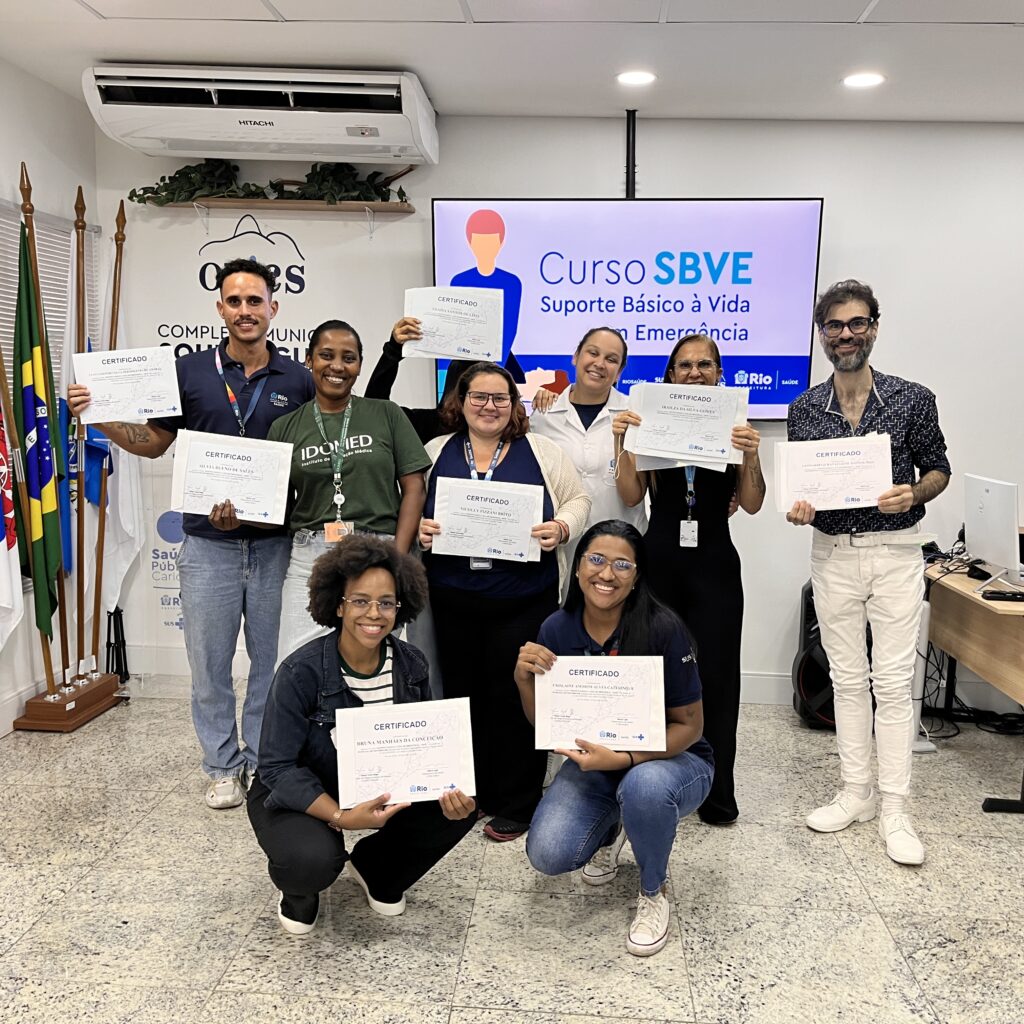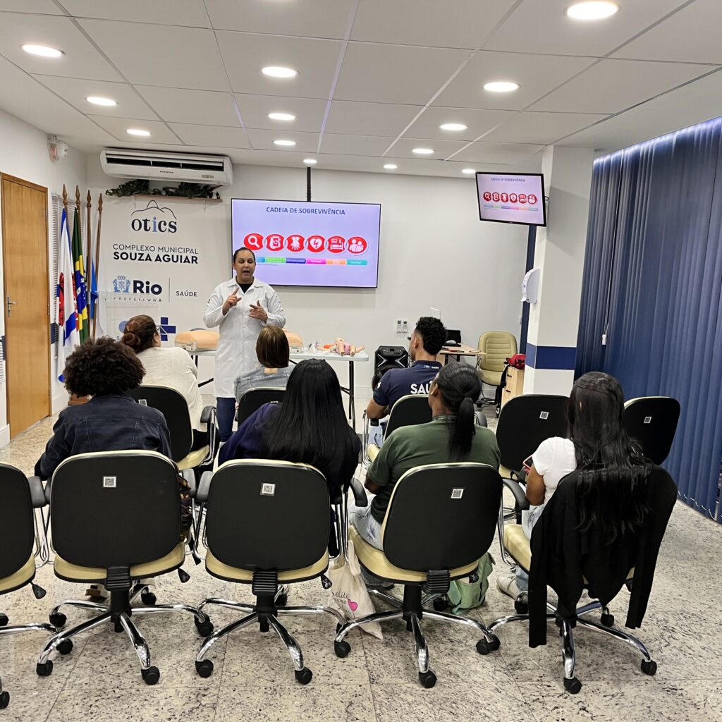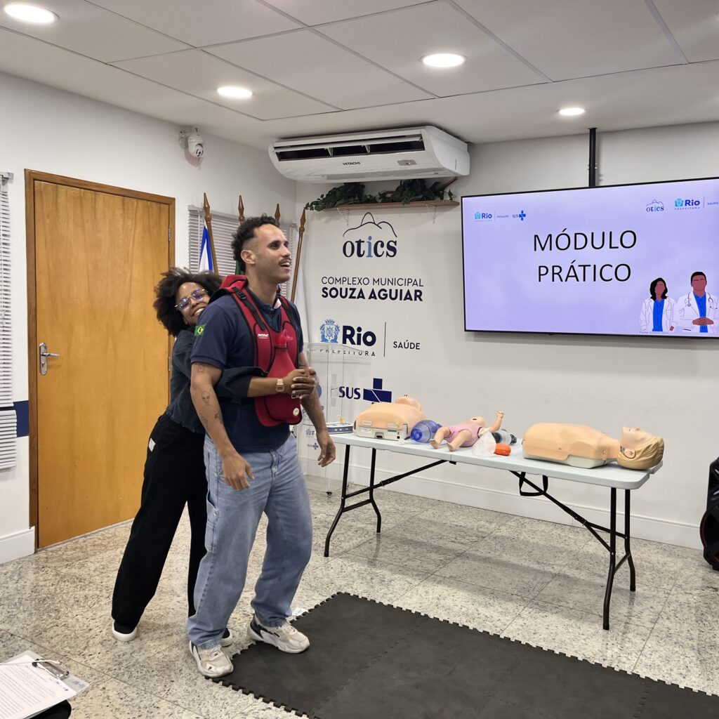 A 49ª turma do Curso de Suporte Básico à Vida em Emergências (SBVE) foi ministrada na tarde desta terça-feira, 3 de junho de 2025, na Sala Multiuso e no Box de Simulação da OTICS-Rio Souza Aguiar. Como fruto da parceria entre a Rede OTICS/SMS-RJ e do Núcleo de Formação Profissional, Pesquisa e Educação Permanente (NUFOPEP/RioSaúde).