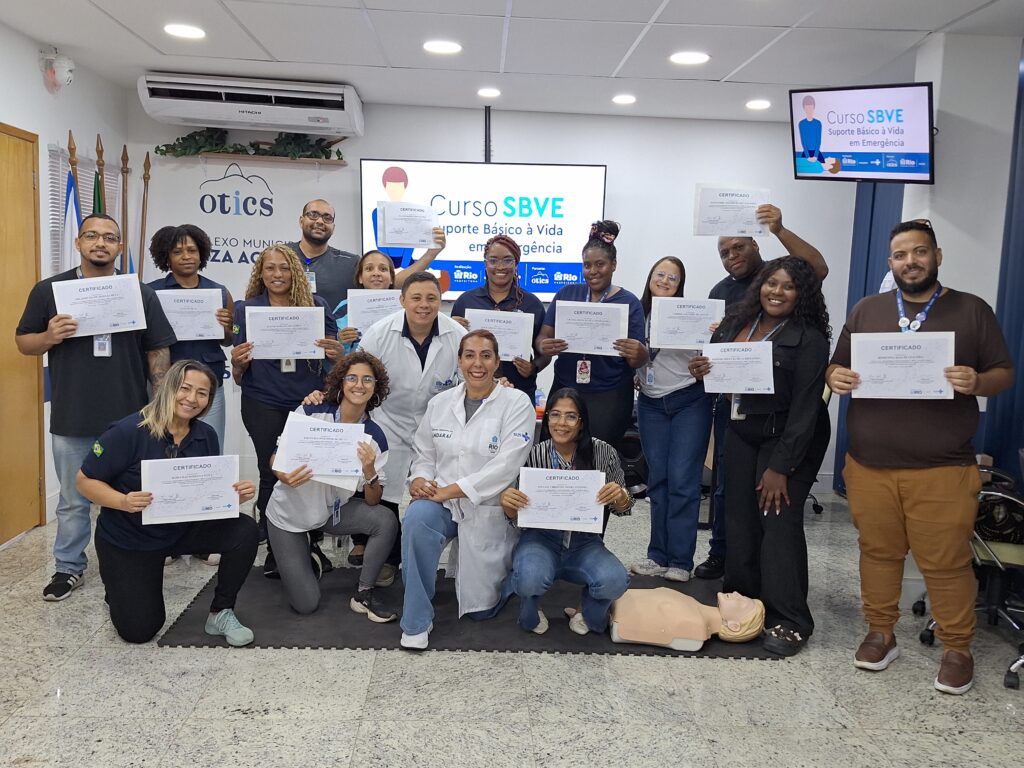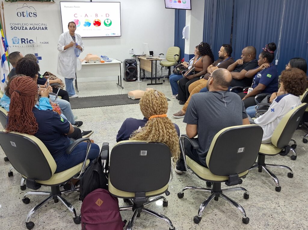 A 55ª turma do Curso de Suporte Básico à Vida em Emergências (SBVE) foi ministrada na tarde desta terça-feira, 17 de junho de 2025, na Sala Multiuso da OTICS-RIO Souza Aguiar. Como fruto da parceria entre a Rede OTICS/SMS-RJ e o Núcleo de Formação Profissional, Pesquisa e Educação Permanente (NUFOPEP/RioSaúde).