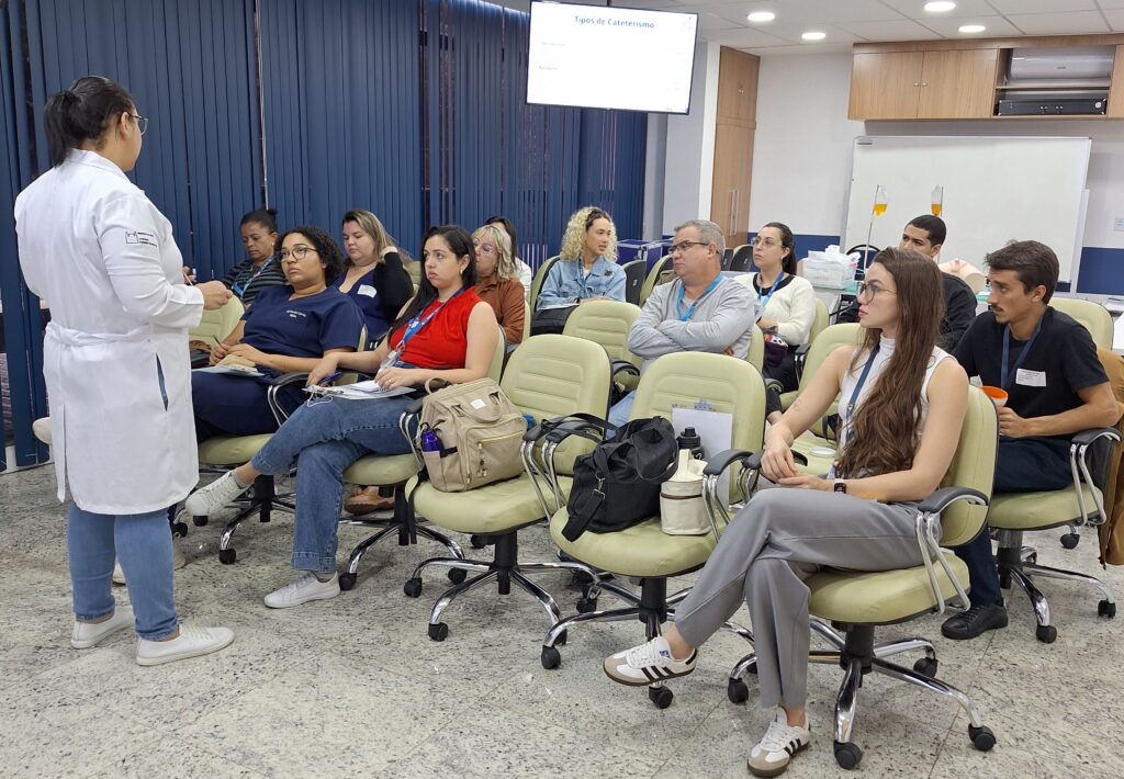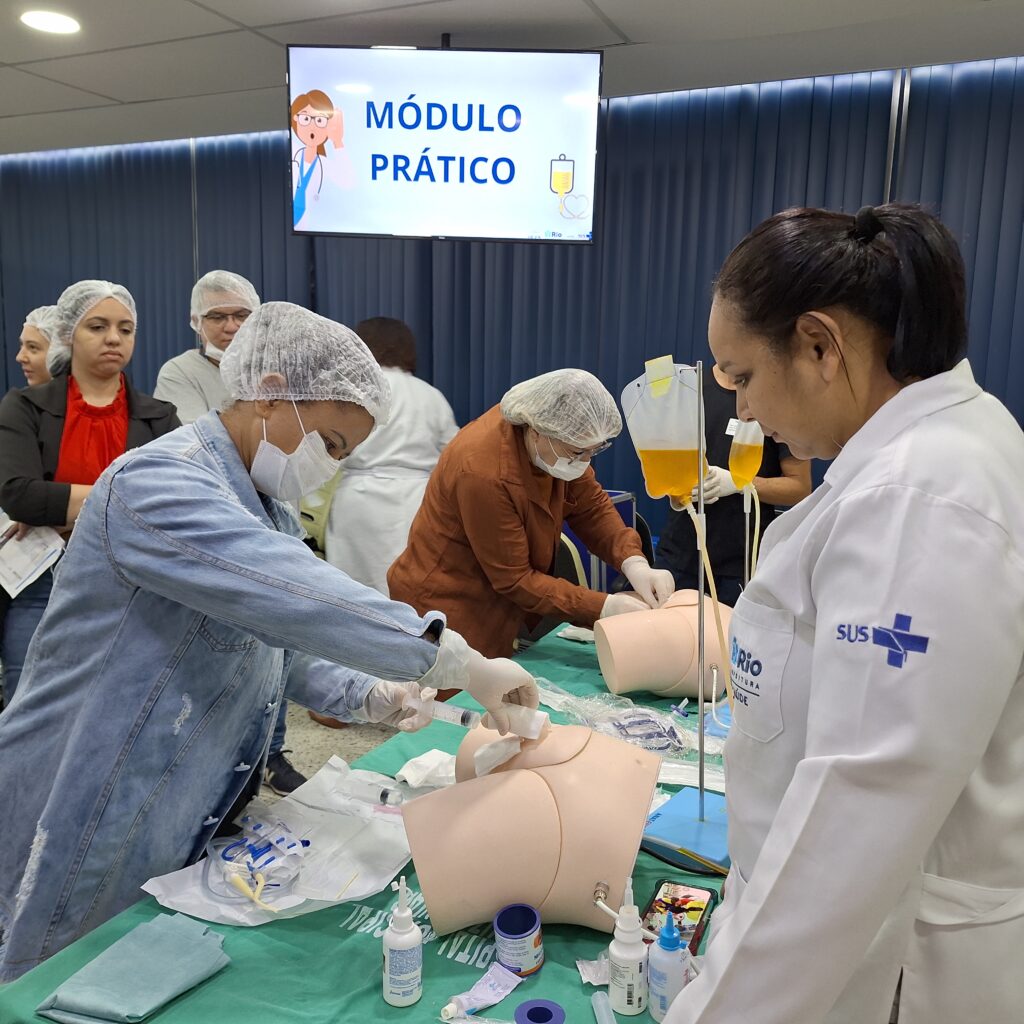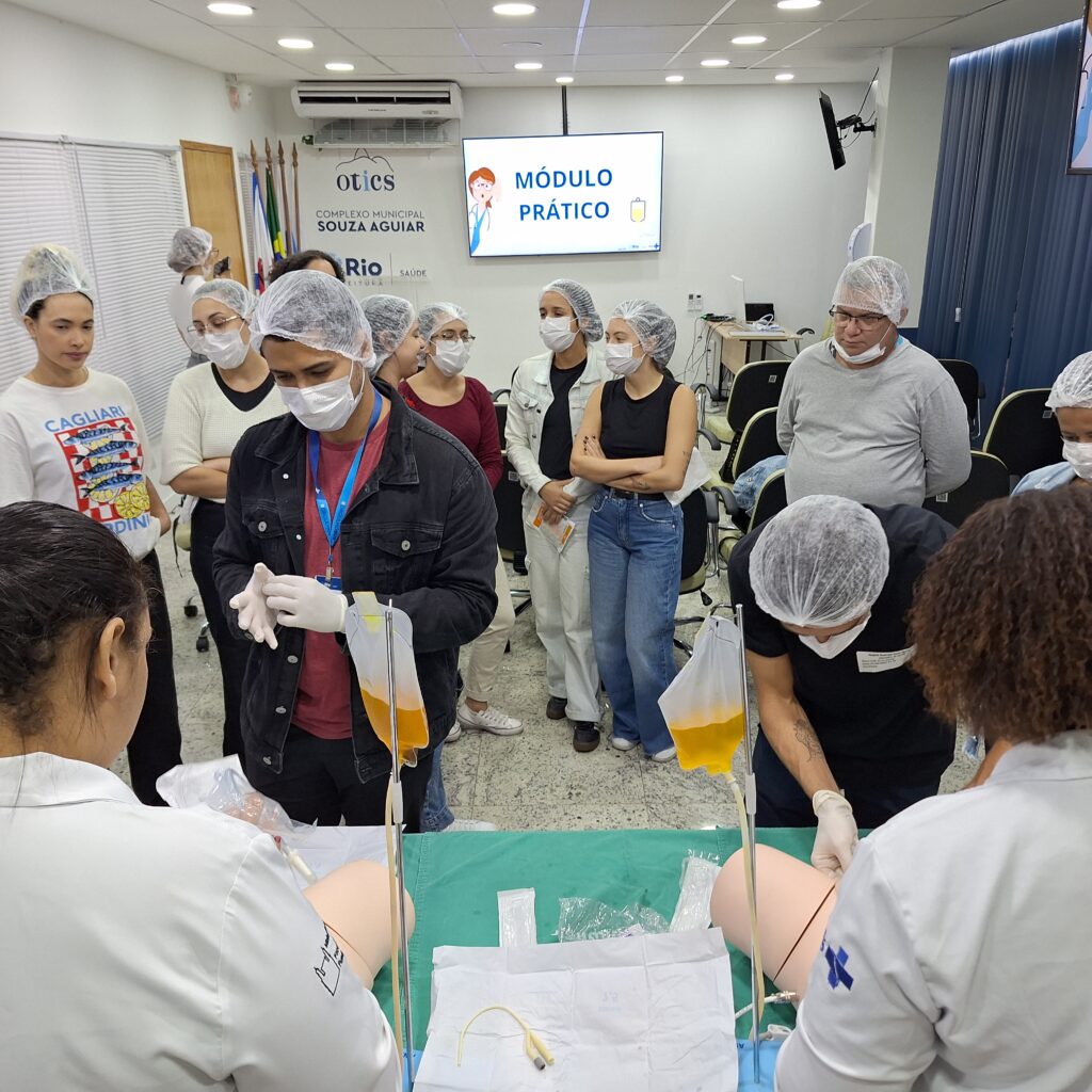 A 6ª turma do Curso Prático de Cateterismo Vesical no Adulto (PRATICAVA) ocorreu nesta terça-feira, 24 de junho de 2025, no período da manhã, na Sala Multiuso da Estação OTICS Rio Souza Aguiar. O curso contou com a participação de 14 profissionais de saúde, sendo 9 enfermeiros(as) e 5 médicos(as), lotados nas seguintes unidades: CMS Newton Alves Cardozo, CMS Hélio Pellegrino, CF Felippe Cardoso, Hospital do Andaraí, CF Cândido Ribeiro da Silva Filho, CMS Augusto do Amaral Peixoto e CMS Sávio Antunes Antares. Houve 9 ausências, sendo 7 enfermeiros(as) e 2 de médicos(as), lotados nas seguintes unidades: UPA 24h Vila Kennedy, CF Zilda Arns, CF Joãosinho Trinta, CSE Lapa, CMS Hélio Pellegrino, Instituto Municipal Philippe Pinel, Hospital do Andaraí e CER Campo Grande.