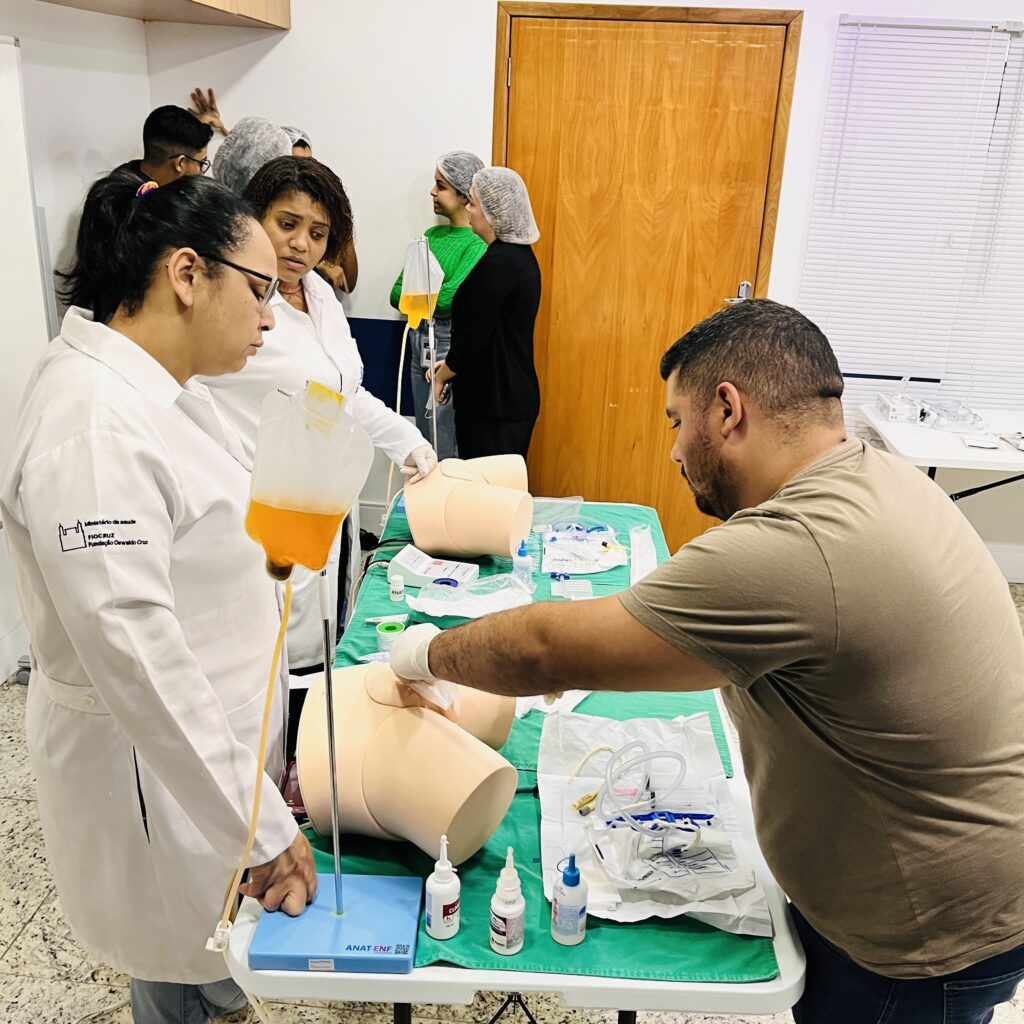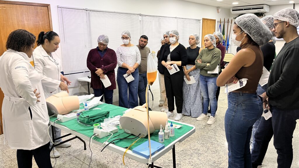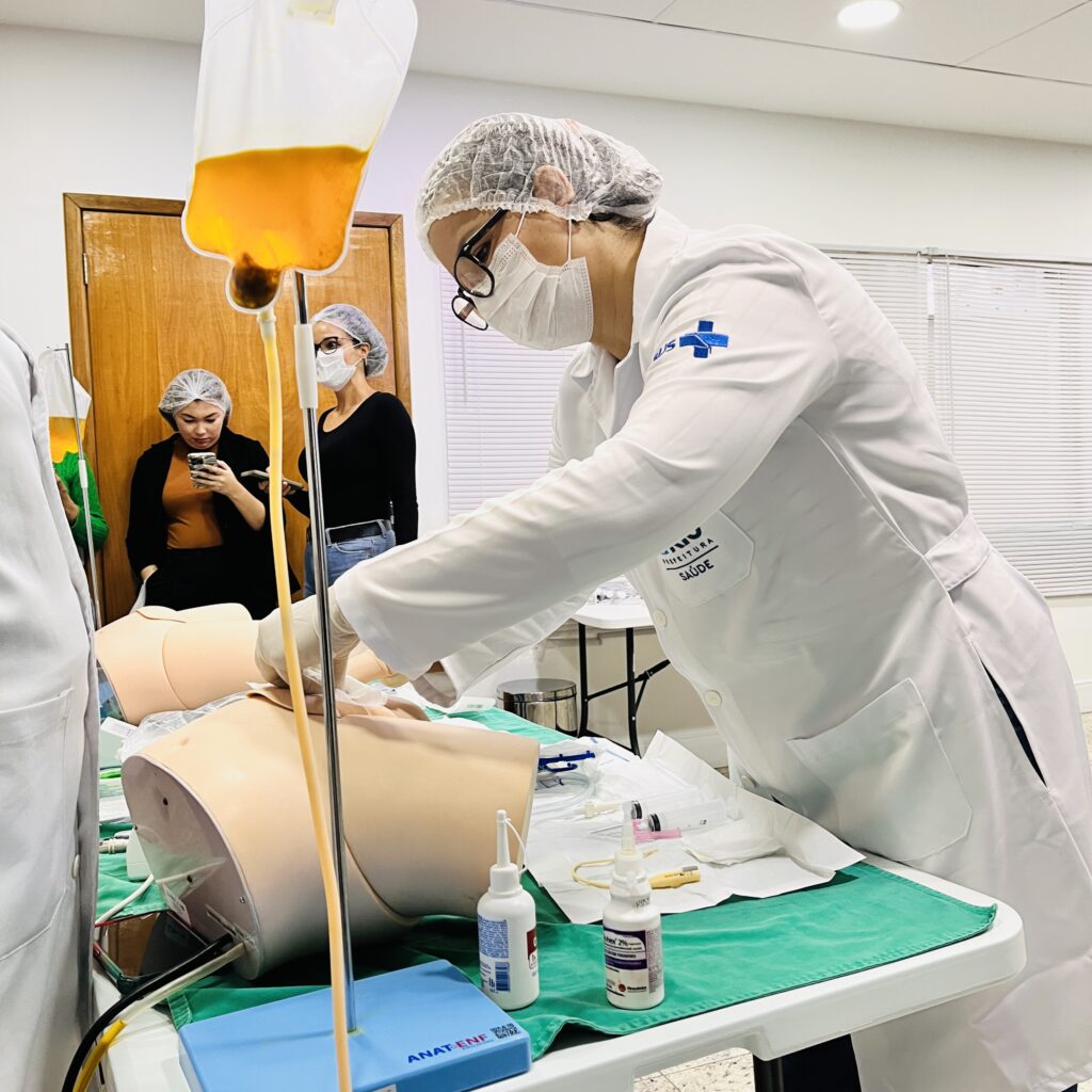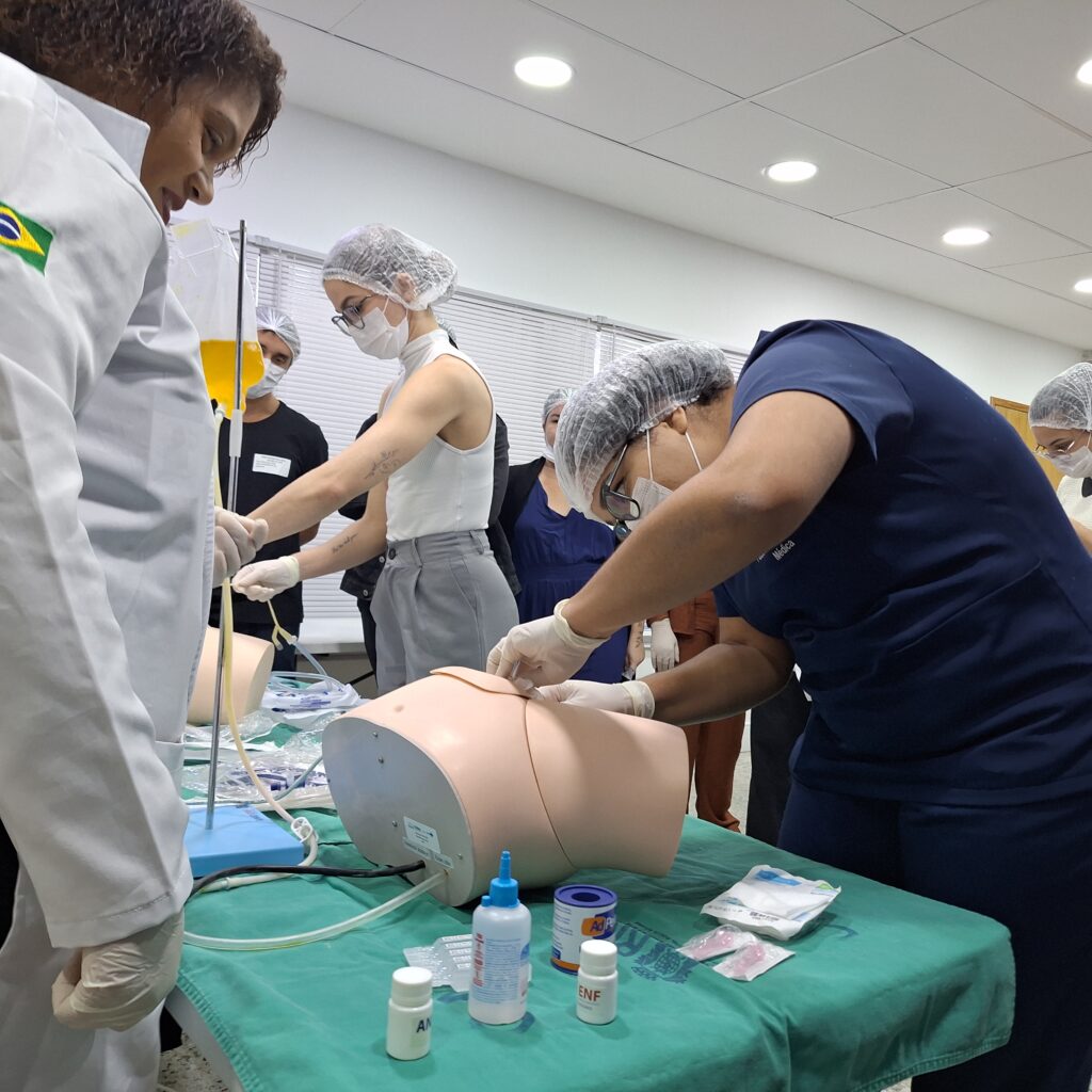 Além disso, os participantes tiveram a oportunidade de realizar treinamento prático em manequins específicos, representando anatomias masculinas e femininas adultas.