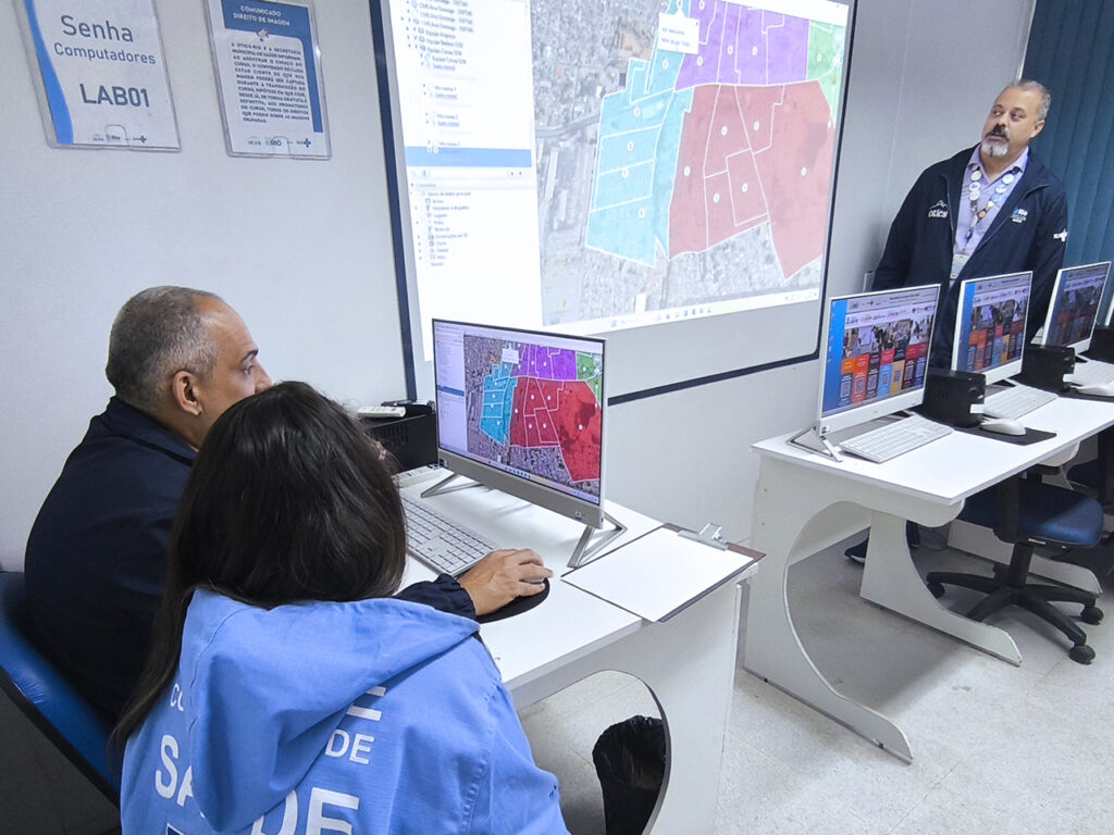 Durante a oficina, os profissionais utilizaram o programa Google Earth Pro, que permite uma visualização territorial em três dimensões, contribuindo para maior precisão na delimitação das áreas de cobertura das unidades.