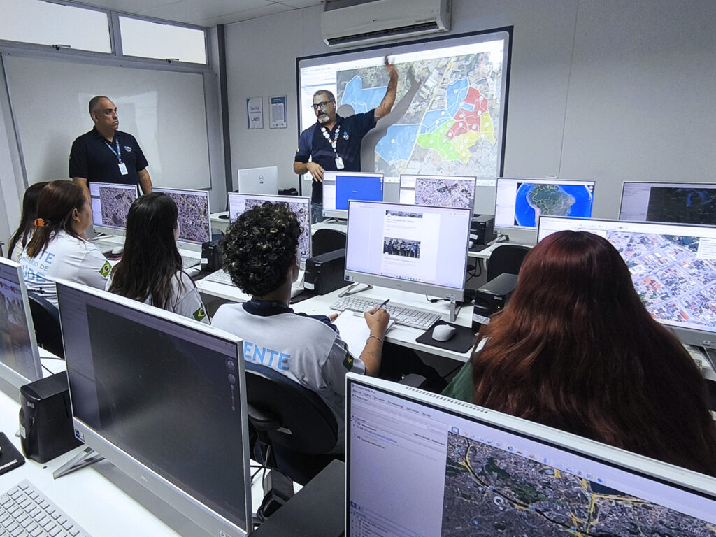 Durante a oficina, os profissionais utilizaram o programa Google Earth Pro, que permite uma visualização territorial em três dimensões, contribuindo para maior precisão na delimitação das áreas de cobertura das unidades.
