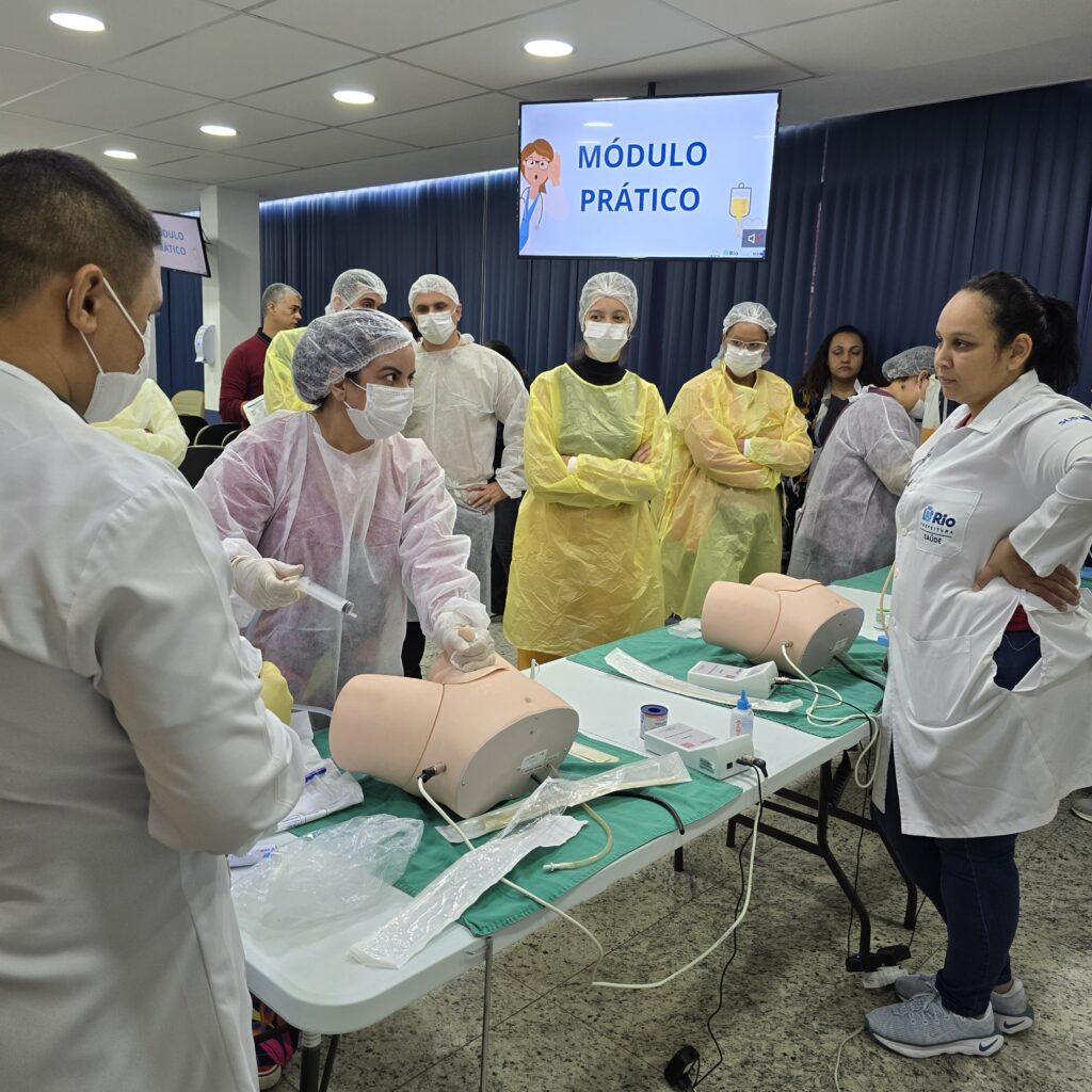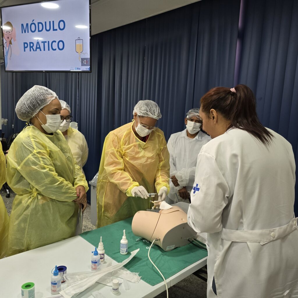 A 8ª turma do Curso Prático de Cateterismo Vesical no Adulto (PRATICAVA) ocorreu nesta quinta-feira, 31 de julho de 2025, no período da manhã, na Sala Multiuso da Estação OTICS Rio Souza Aguiar. O curso contou com a participação de 18 profissionais de saúde, sendo 16 enfermeiros(as) e 2 médicos(as), lotados nas seguintes unidades: CF Felippe Cardoso, CMS Alice Toledo Tibiriçá, Hospital Municipal da Piedade, Hospital Municipal Rocha Faria, Hospital Municipal Souza Aguiar, CMS Dr Albert Sabin, UPA 24h Vila Kennedy, CF Luiz Celio Pereira, CF Sergio Vieira de Mello, Hospital do Andaraí, Hospital Municipal Lourenço Jorge e Hospital Federal de Bonsucesso. Houve 8 ausências, sendo 5 enfermeiras e 3 de médicos(as), lotados nas seguintes unidades: CMS Carlos Alberto Nascimento, Hospital Municipal Lourenço Jorge, CF Heitor dos Prazeres, CF Nilda Campos de Lima, CF Fernando a Braga Lopes e CER Campo Grande.