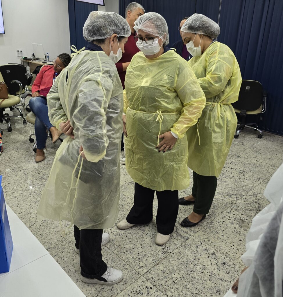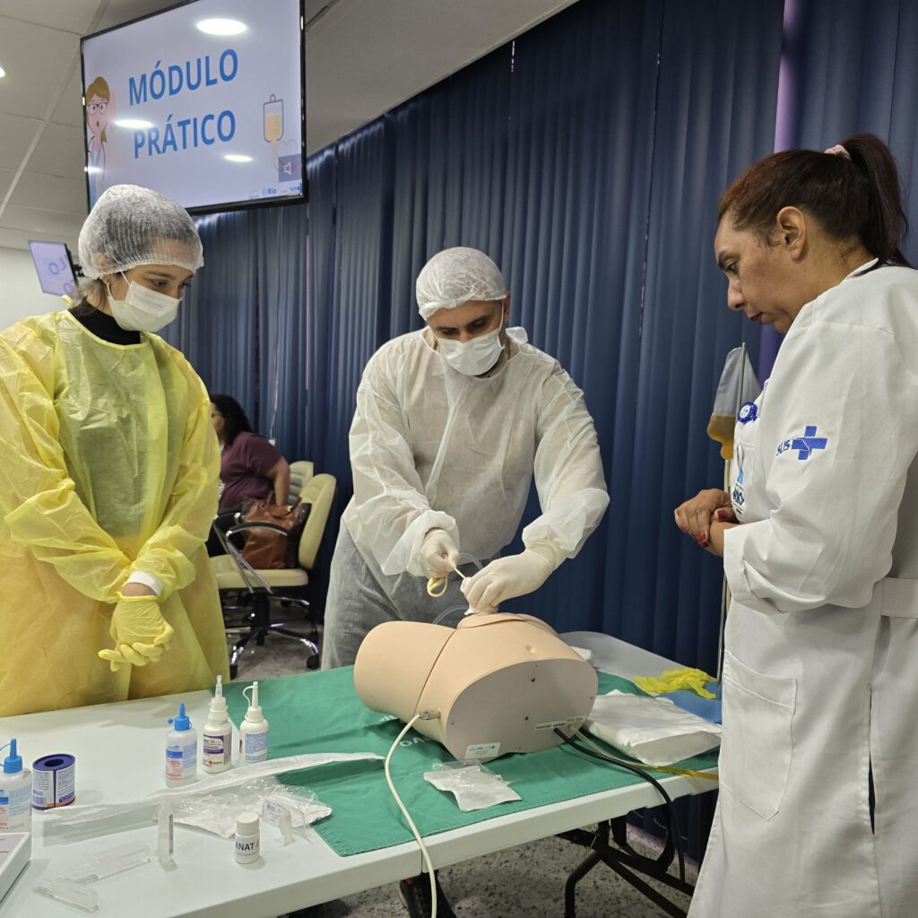 Além disso, os participantes tiveram a oportunidade de realizar treinamento prático em manequins específicos, representando anatomias masculinas e femininas adultas.