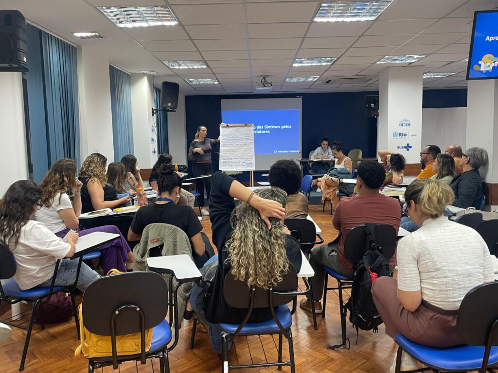 Integrantes do Grupo de Trabalho (GT) Iniquidades do Programa de Residência em Medicina de Família e Comunidade (PRMFC) reuniram-se nesta quarta-feira, 13/08, no Auditório Barbara Starfield do OTICS – Rio Sede para uma aula sobre a saúde da população em situação de rua. A reunião foi conduzida pela preceptora do PRMFC, Giseli Barbosa.