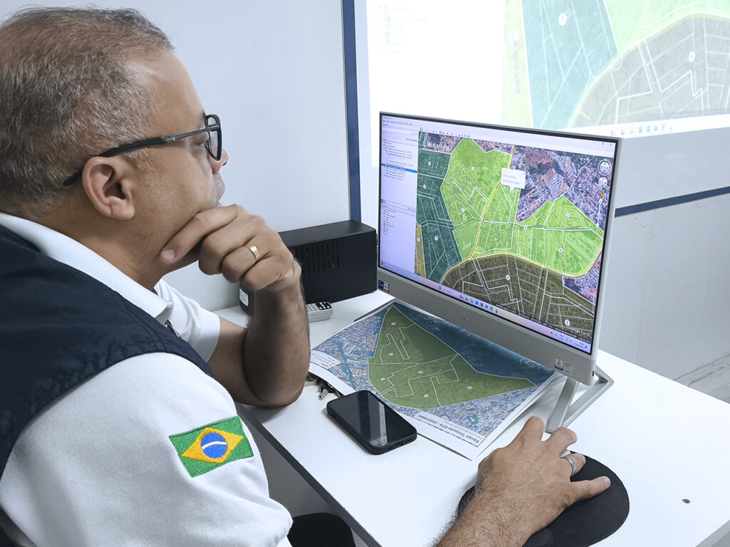 Durante a atividade, os participantes utilizaram o Google Earth Pro, ferramenta que possibilita uma visualização detalhada e tridimensional do território, contribuindo para maior precisão na definição das áreas de cobertura das unidades de saúde.