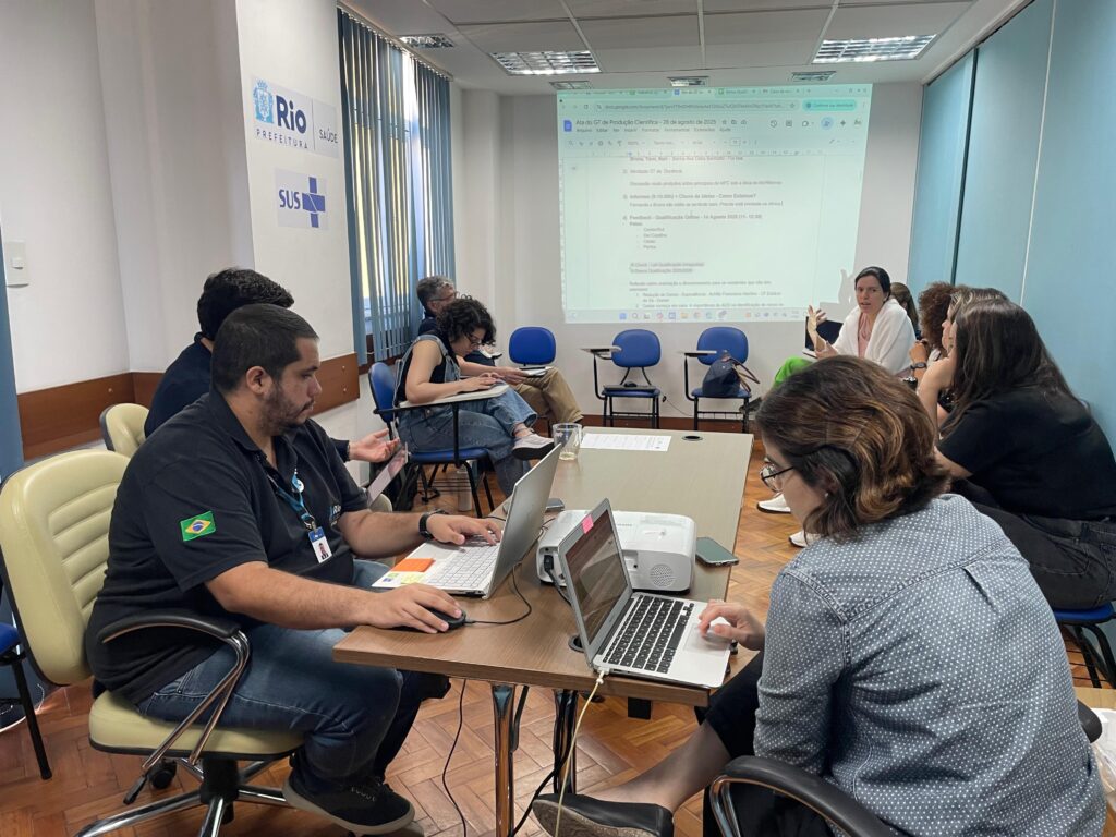 Na quarta-feira, 27/08, membros do Grupo de Trabalho Produção Científica do Programa de Residência em Medicina de Família e Comunidade (PRMFC) reuniram-se na Sala de Reunião I do OTICS Rio–Sede. A reunião foi apoiada pela médica preceptora Beatriz Gama.
