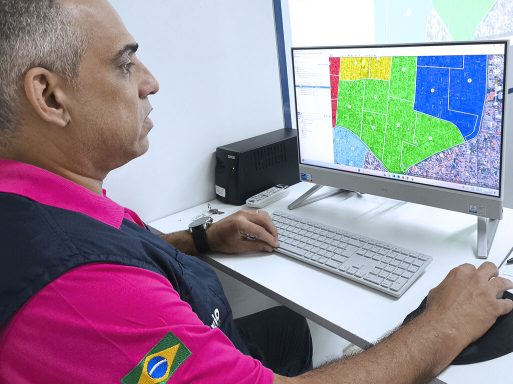 Durante a atividade, os participantes utilizaram o Google Earth Pro, ferramenta que possibilita uma visualização detalhada e tridimensional do território, contribuindo para maior precisão na definição das áreas de cobertura das unidades de saúde.
