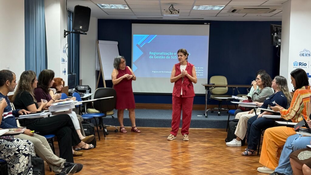 Na sexta-feira, 05 de setembro, o Doutorado Profissional em Atenção Primária à Saúde (DPAPS) da Escola Nacional de Saúde Pública Sergio Arouca (ENSP/Fiocruz) e da Secretaria Municipal de Saúde (SMS/RJ), deu continuidade ao módulo Campo da Saúde Coletiva. A programação contou com duas aulas, ministradas no auditório Barbara Starfield do OTICS – RIO Sede e no auditório Luís Augusto Pisco do OTICS – Rio PARN. Pela manhã, a professora Luciana Dias (ENSP/Fiocruz) ministrou a aula “Regionalização e Desafios da Gestão do SUS”. À tarde, a aula com o tema “Os Desafios da Gestão do SUS – Introdução à Metodologias Ativas e Abertura do Grupo Tutorial” contou com os professores Carlos Otávio Fiúza, Alda Lacerda, Vanessa Coser, Adriana Coser e Elyne Engstrom, todos da ENSP.