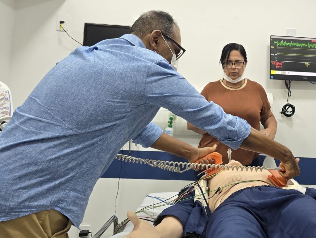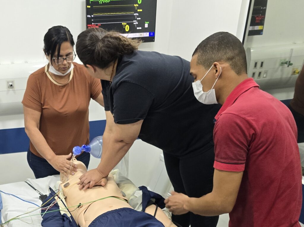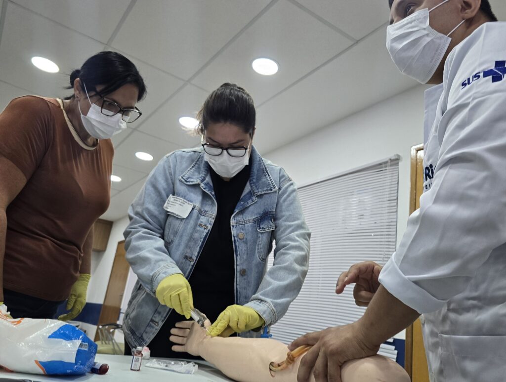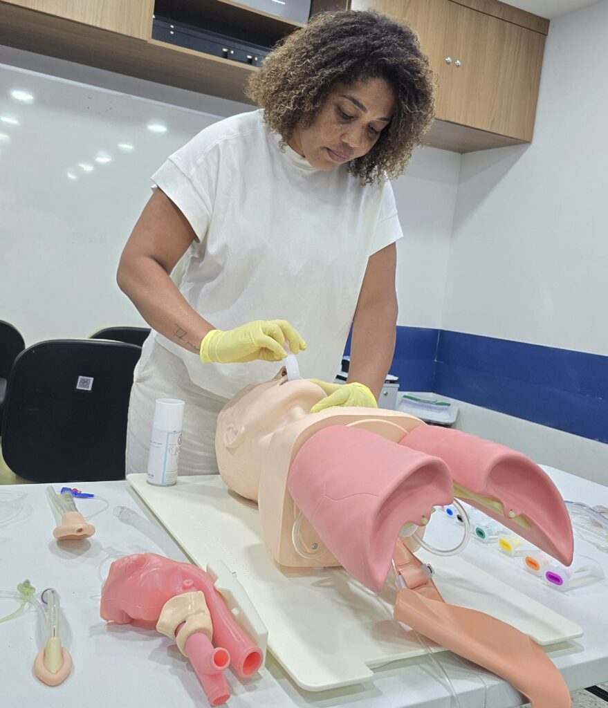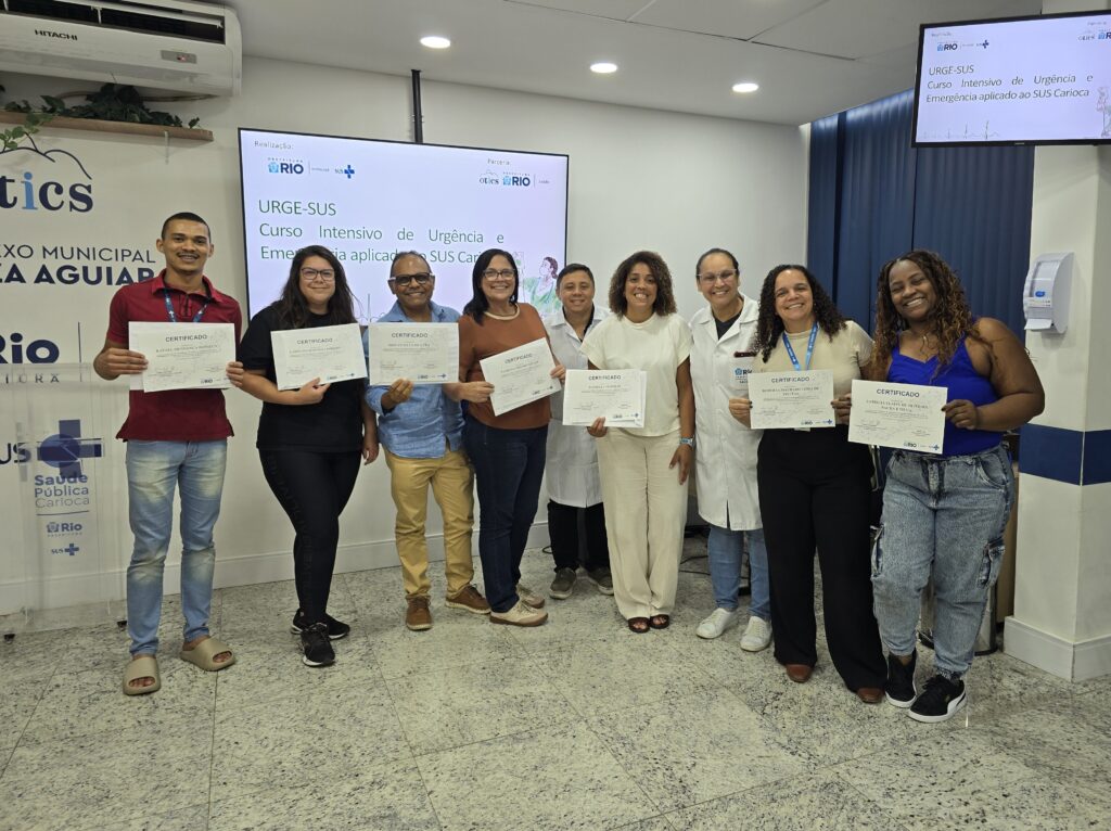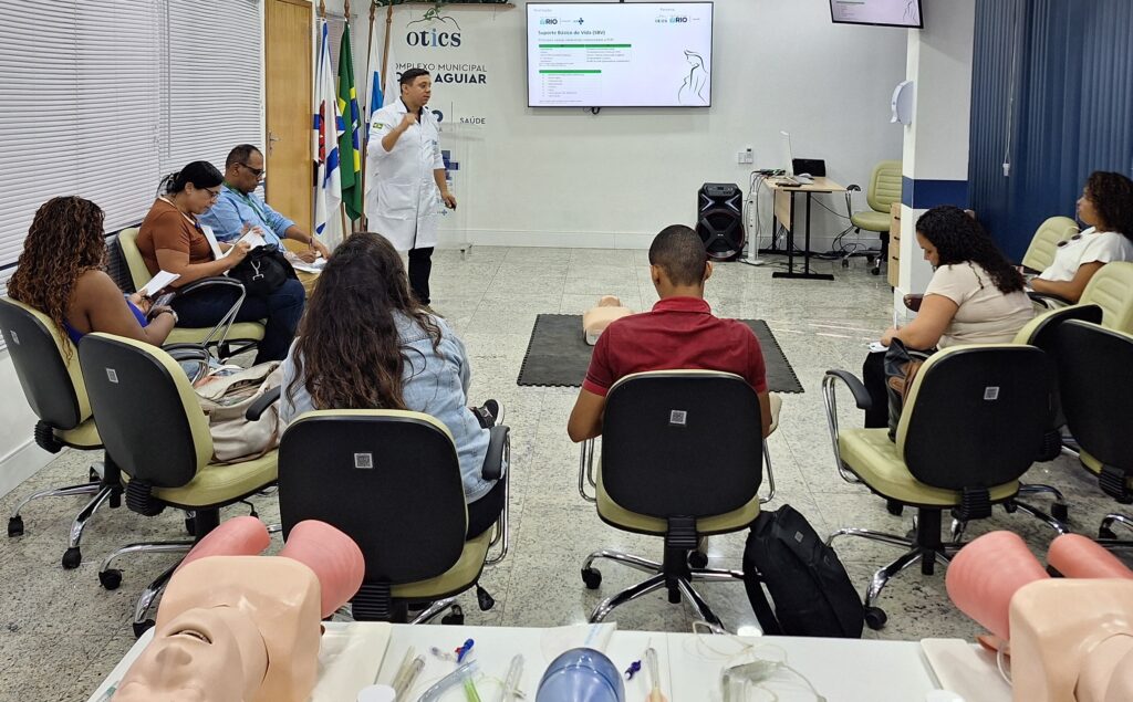 A 17ª turma do Curso Intensivo de Urgência e Emergência aplicado ao SUS Carioca – URGE-SUS foi ministrada nesta terça-feira, 7 de outubro de 2025, na Sala Multiuso e no Box de Simulação da OTICS-Rio Souza Aguiar. O curso foi criado pela OTICS/SMS-RJ, em parceria com o Núcleo de Formação Profissional, Pesquisa e Educação Permanente (NUFOPEP/RioSaúde), e destina-se à atualização e aprimoramento dos enfermeiros que atuam nas emergências das unidades de saúde do município do Rio de Janeiro.