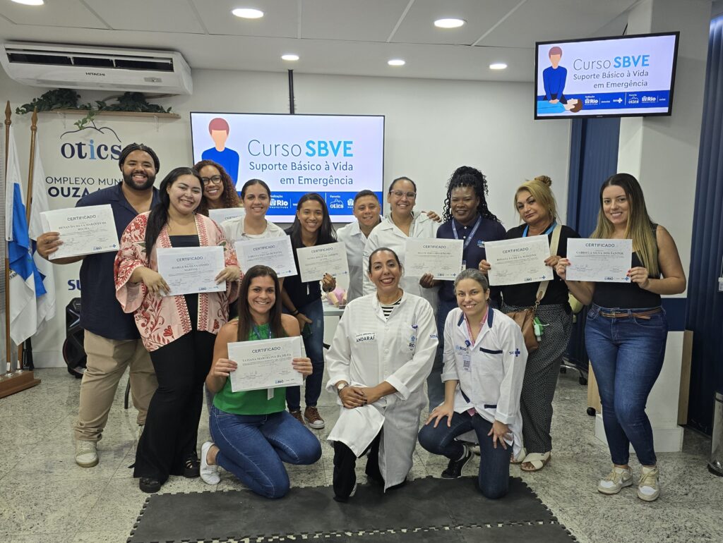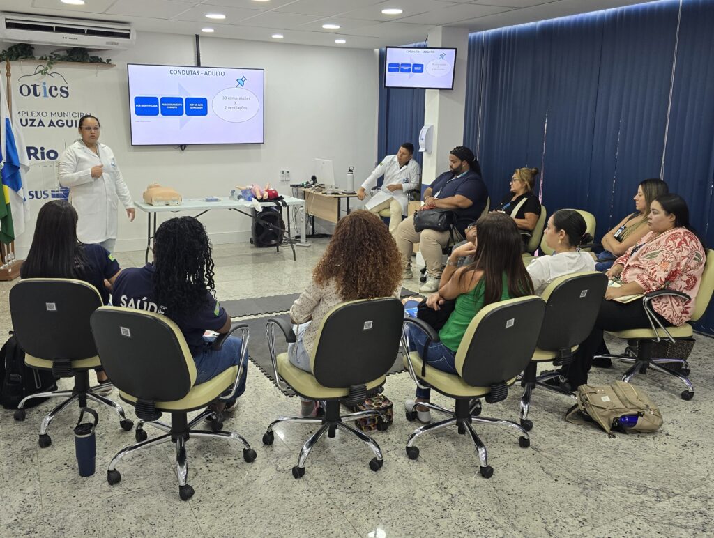 A 93ª turma do Curso de Suporte Básico à Vida em Emergências (SBVE) foi ministrada na tarde desta terça-feira, 14 de outubro de 2025, na Sala Multiuso e no Box de Simulação da OTICS-Rio Souza Aguiar. Como fruto da parceria entre a Rede OTICS/SMS-RJ e o Núcleo de Formação Profissional, Pesquisa e Educação Permanente (NUFOPEP/RioSaúde).