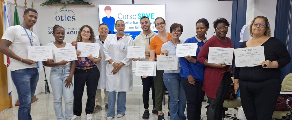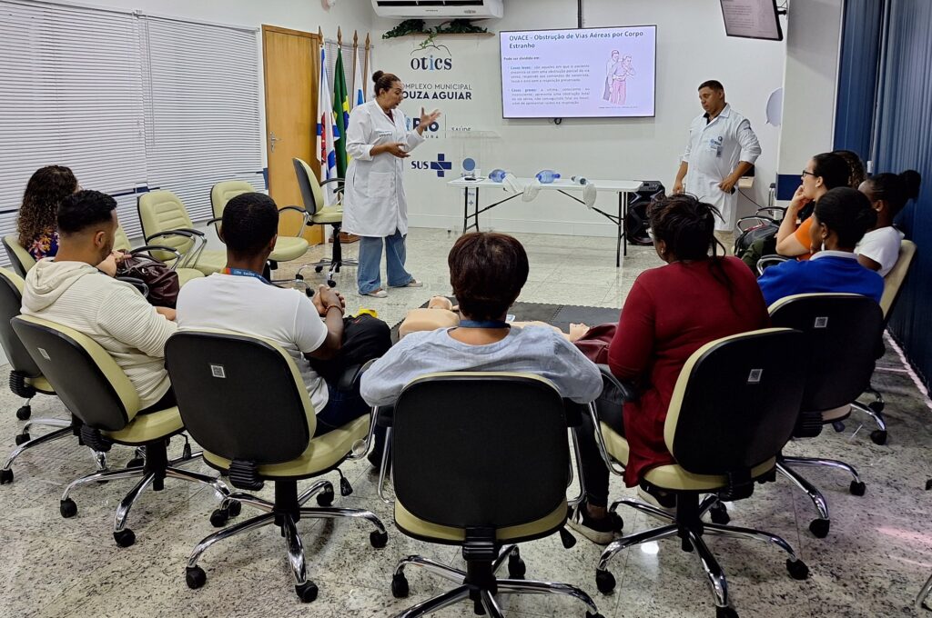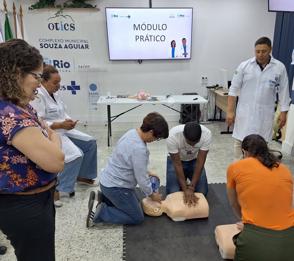 A 94ª turma do Curso Suporte Básico à Vida em Emergência (SBVE) foi ministrada na manhã desta terça-feira, 28 de outubro de 2025, na Sala Multiuso e Box de Simulação da OTICS-Rio Souza Aguiar. Como fruto da parceria da Secretaria Municipal de Saúde do Rio de Janeiro (SMS-RJ), com apoio da Rede OTICS-Rio e Núcleo de Formação Profissional, Pesquisa e Educação Permanente (NUFOPEP/RioSaúde).