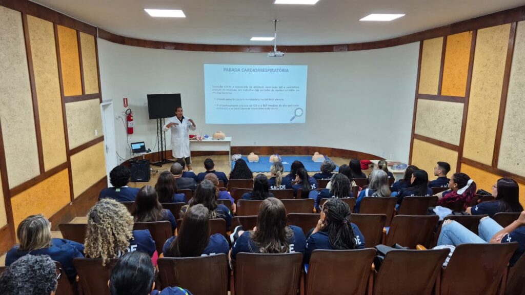 No dia 4 de novembro de 2025, segundo dia do mutirão “Rocha Fará” em Campo Grande, a Rede OTICS-Rio/SMS-RJ, em parceria com o NUFOPEP/Riosaúde, realizou a 100ª turma do Curso de Suporte Básico à Vida em Emergências (SBVE), no turno da manhã. A atividade foi voltada aos profissionais de saúde do Hospital Municipal Rocha Faria.
