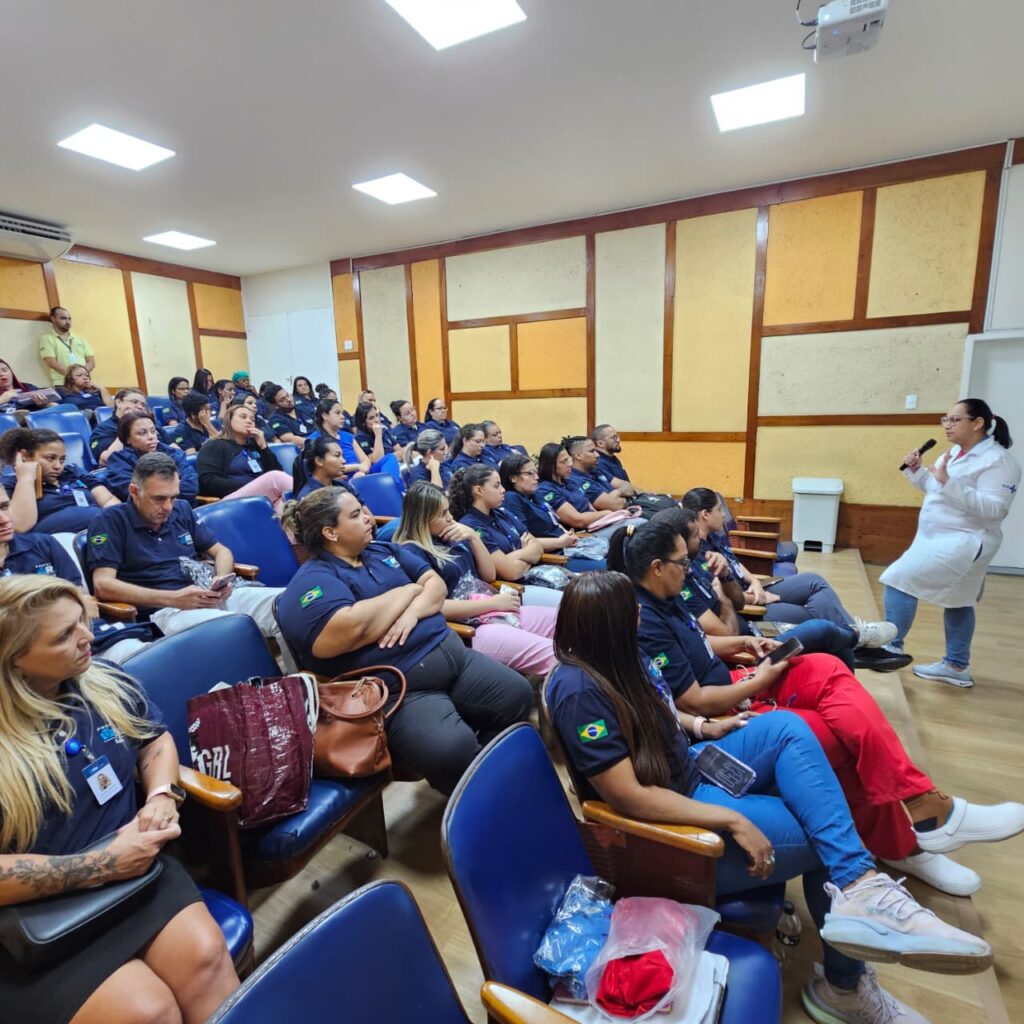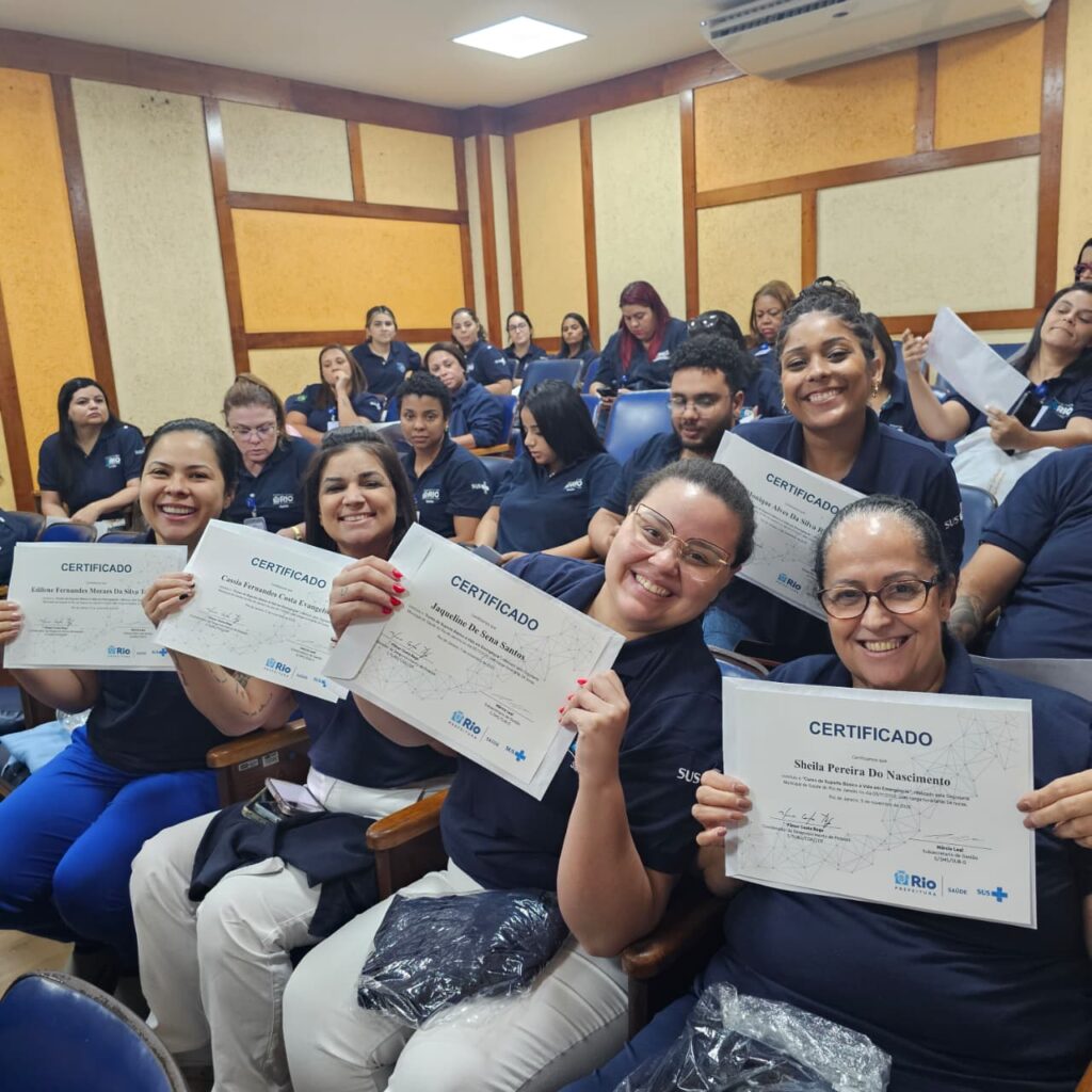 No dia 5 de novembro de 2025, terceiro dia do mutirão “Rocha Fará” em Campo Grande, a Rede OTICS-Rio/SMS-RJ, em parceria com o NUFOPEP/Riosaúde, realizou a 103ª turma do Curso de Suporte Básico à Vida em Emergências (SBVE), no turno da tarde. A atividade foi voltada aos profissionais de saúde do Hospital Municipal Rocha Faria.