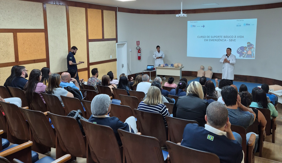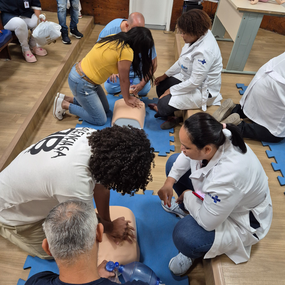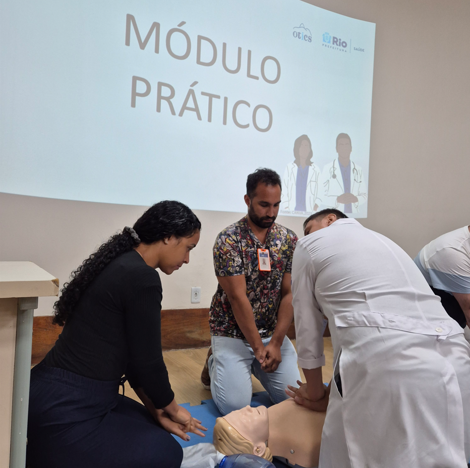 No dia 24 de novembro de 2025, décimo dia do mutirão “Rocha Fará” em Campo Grande, a Rede OTICS-Rio/SMS-RJ, em parceria com o NUFOPEP/RioSaúde, realizou a 112ª turma do Curso de Suporte Básico à Vida em Emergência (SBVE), no turno da manhã. A atividade foi voltada aos profissionais de saúde do Hospital Municipal Rocha Faria.