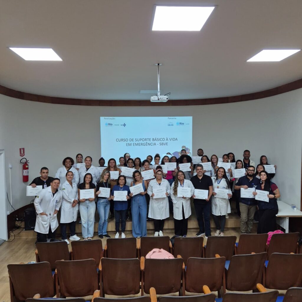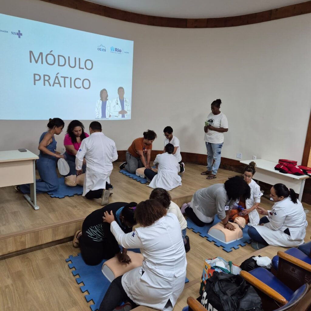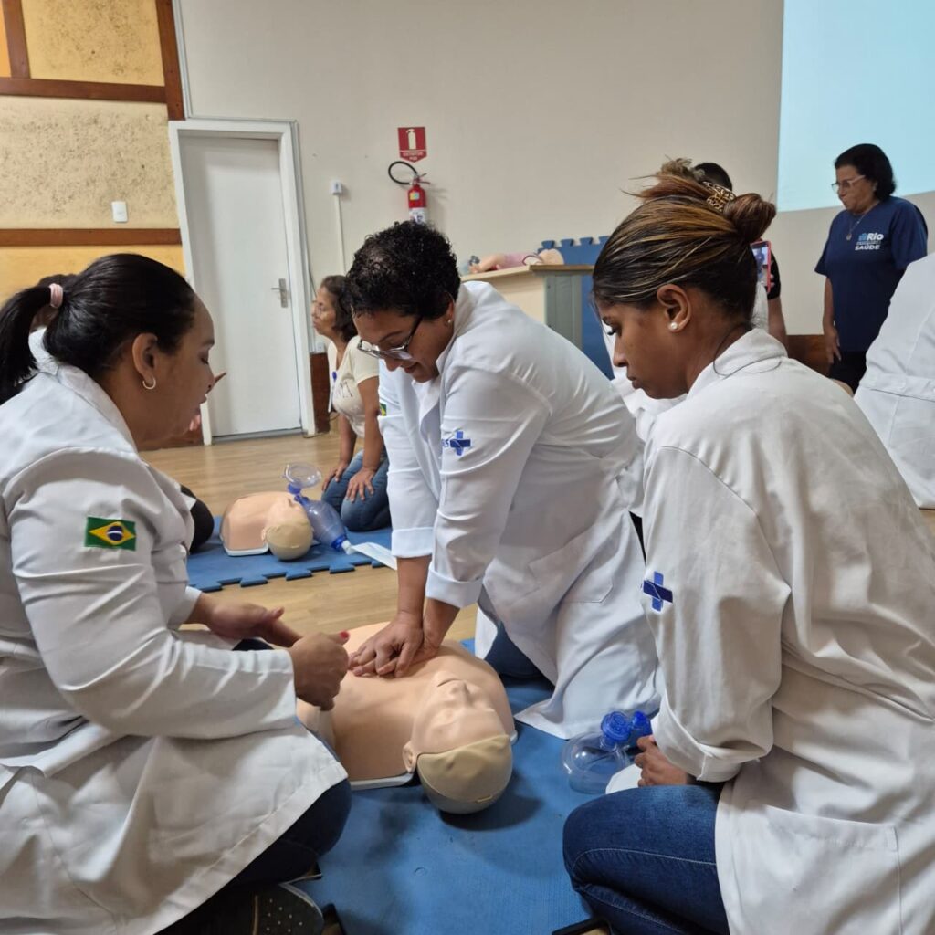 No dia 24 de novembro de 2025, décimo dia do mutirão “Rocha Fará” em Campo Grande, a Rede OTICS-Rio/SMS-RJ, em parceria com o NUFOPEP/RioSaúde, realizou a 113ª turma do Curso de Suporte Básico à Vida em Emergência (SBVE), no turno da tarde. A atividade foi voltada aos profissionais de saúde do Hospital Municipal Rocha Faria.