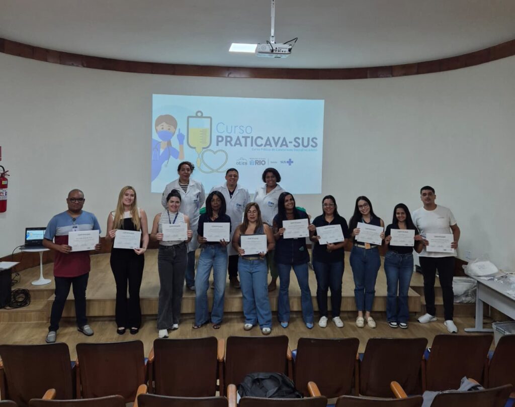 No dia 1 de dezembro de 2025, décimo primeiro dia do mutirão “Rocha AINDA Fará” em Campo Grande, a Rede OTICS-Rio/SMS-RJ, em parceria com o NUFOPEP/RioSaúde, realizou a 16ª turma do Curso Prático de Cateterismo Vesical no Adulto (PRATICAVA-SUS), no turno da manhã. A atividade foi voltada aos profissionais de saúde do Hospital Municipal Rocha Faria.