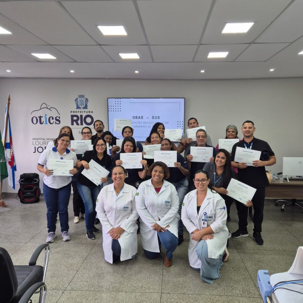 Na tarde desta quinta-feira, 8 de janeiro de 2026, foi realizada a 2ª turma do curso de Orientações Básicas Gerais em Ambientes de Saúde (OBAG-SUS) na Sala Multiuso da OTICS Lourenço Jorge. O curso foi criado pela OTICS/SMS-RJ, em parceria com o Núcleo de Formação Profissional, Pesquisa e Educação Permanente (NUFOPEP/RioSaúde), e destina-se à atualização e aprimoramento dos profissionais que atuam nas emergências das unidades de saúde do município do Rio de Janeiro.