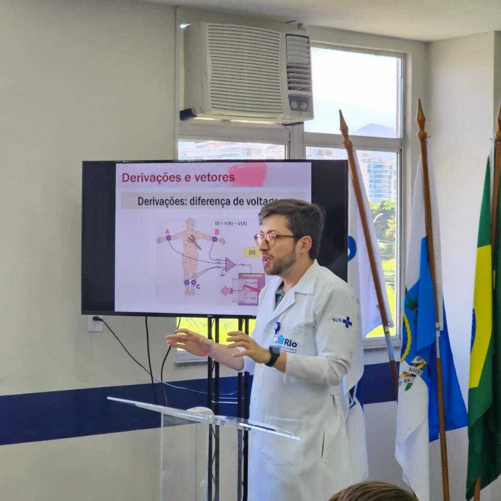 O IEMED é um curso teórico-prático desenvolvido pela OTICS/SMS-RJ e destinado à capacitação de médicos da Atenção Primária à Saúde (APS). Durante o treinamento, os participantes aprofundaram seus conhecimentos sobre a interpretação de exames, com foco nas situações mais comuns encontradas no cotidiano de trabalho. O curso visa aprimorar a qualidade da assistência prestada, oferecendo aos profissionais subsídios para um diagnóstico mais preciso e eficiente. A leitura correta de um eletrocardiograma é crucial para a identificação de distúrbios cardioelétricos, permitindo decisões mais assertivas no atendimento.