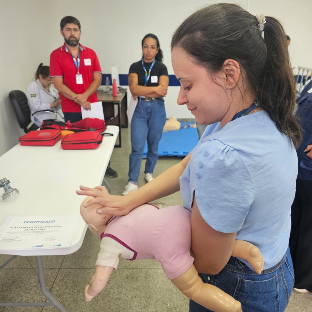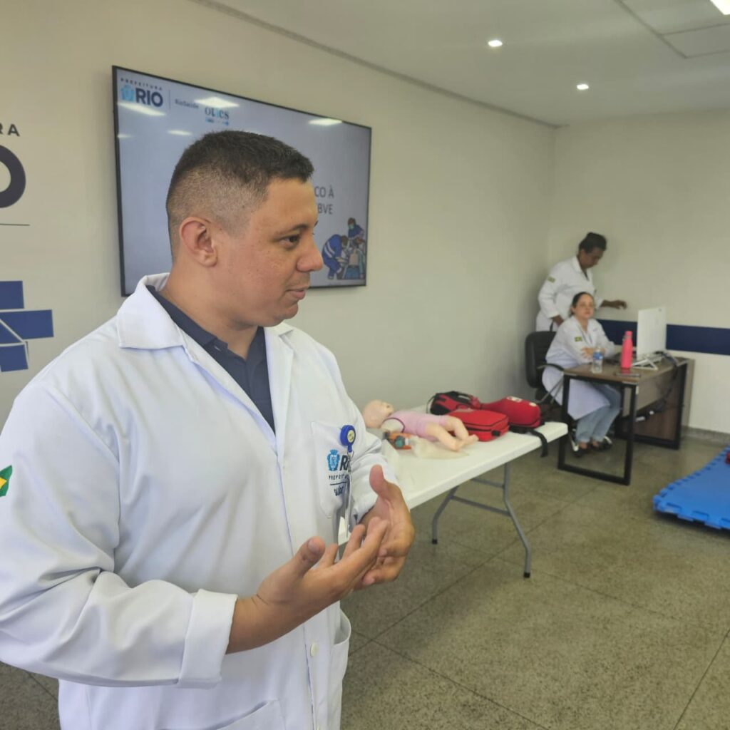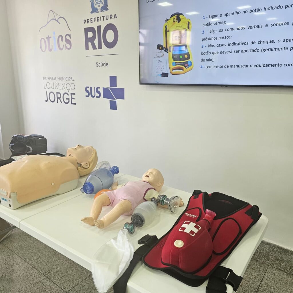 Na tarde desta quarta-feira, dia 14 de Janeiro de 2026, a 5ª turma do Curso de Suporte Básico à Vida em Emergências (SBVE) de 2026 foi ministrada na Sala Multiuso da OTICS-Rio Lourenço Jorge. A capacitação é fruto da parceria entre a Rede OTICS/SMS-RJ e o Núcleo de Formação Profissional, Pesquisa e Educação Permanente (NUFOPEP/RioSaúde).