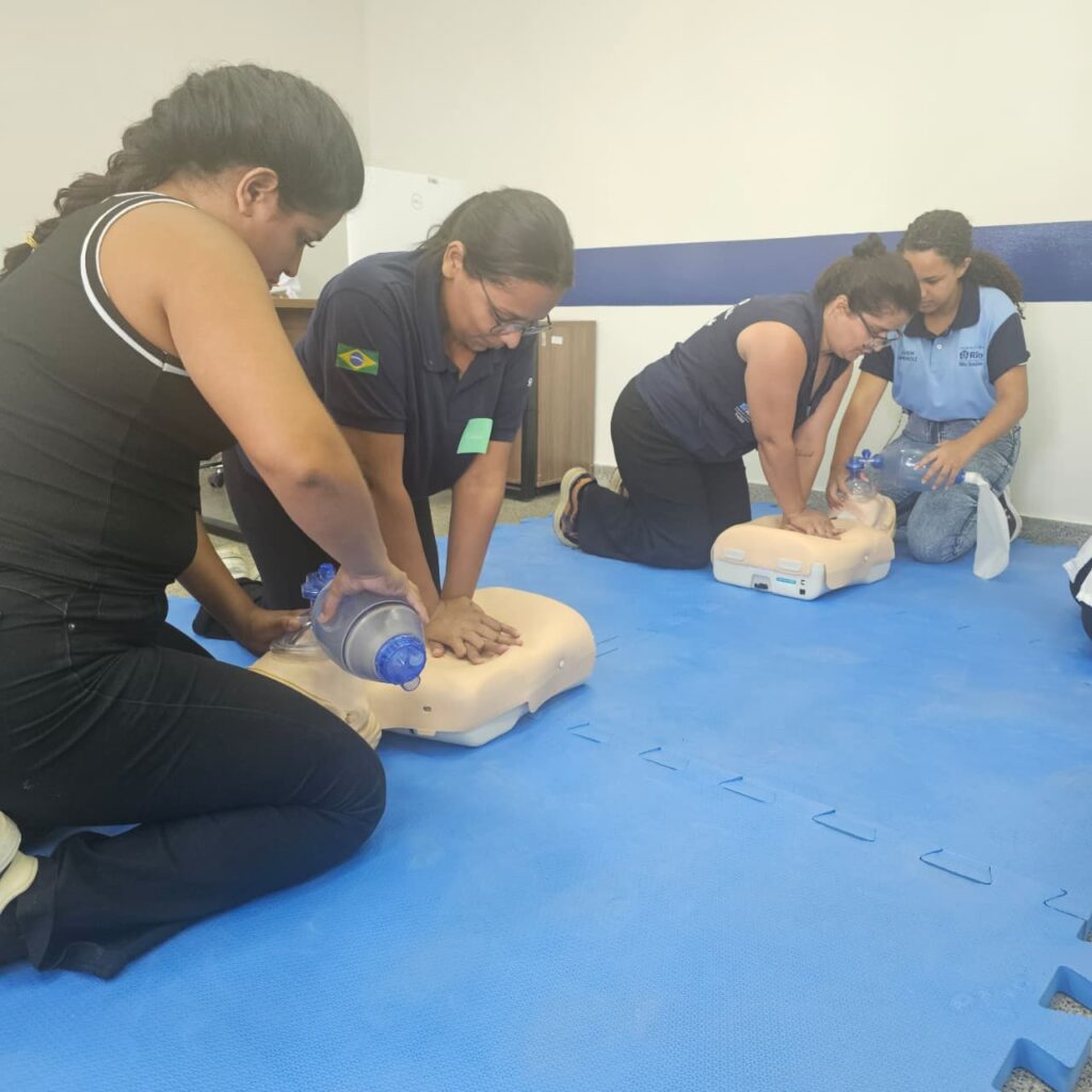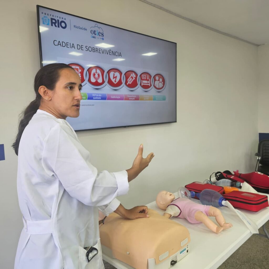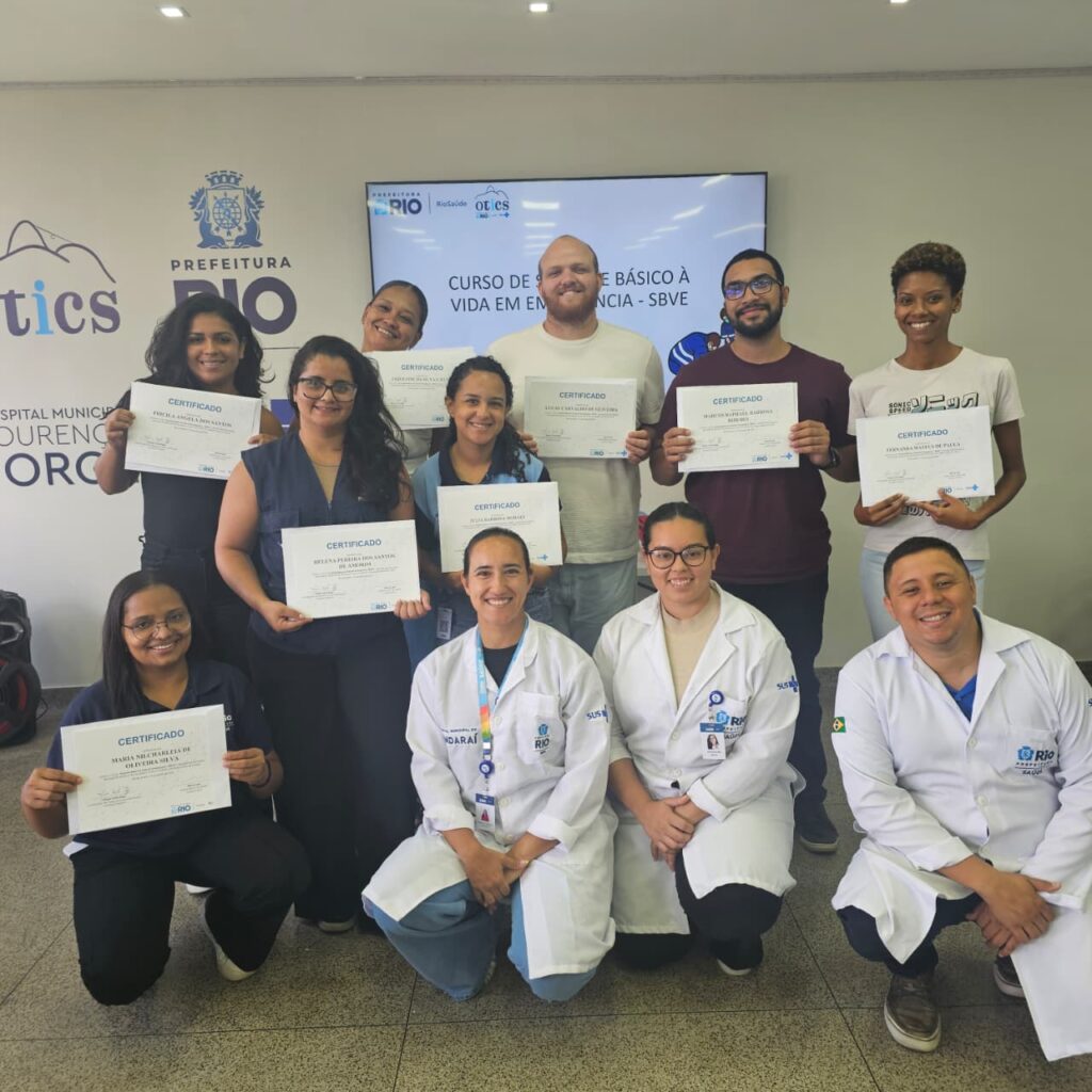 Nesta tarde, quinta-feira, dia 15 de Janeiro de 2026, a 7ª turma do Curso de Suporte Básico à Vida em Emergências (SBVE) de 2026 foi ministrada na Sala Multiuso da OTICS-Rio Lourenço Jorge. A capacitação é fruto da parceria entre a Rede OTICS/SMS-RJ e o Núcleo de Formação Profissional, Pesquisa e Educação Permanente (NUFOPEP/RioSaúde).
