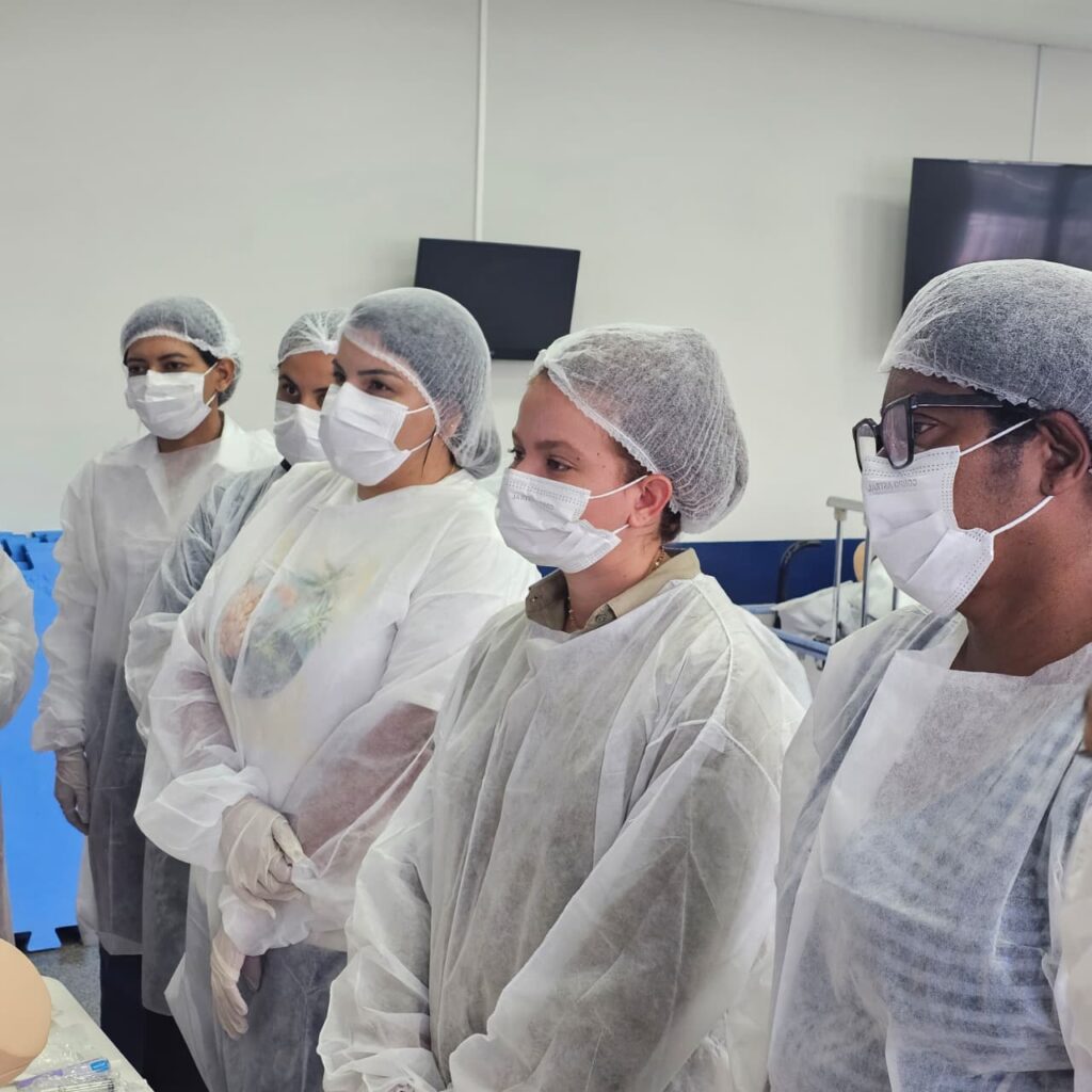 Além disso, os participantes tiveram a oportunidade de realizar treinamento prático em manequins específicos, representando anatomias masculinas e femininas adultas