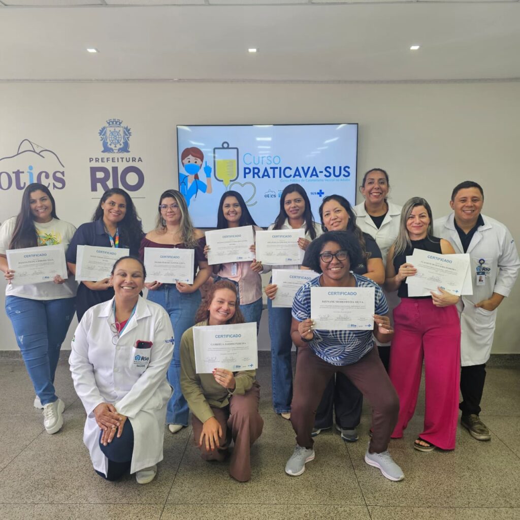 A 1 ª turma do Curso Prático de Cateterismo Vesical no Adulto (PRATICAVA) ocorreu nesta segunda-feira, 26 de janeiro de 2026, no período da manhã, na Sala Multiuso da OTICS Lourenço Jorge. O curso contou com a participação de 9 profissionais de saúde, sendo 6 enfermeiros(as) e 3 médicos(as) lotados nas seguintes unidades: CMS Newton Bethlem, CER Barra, CF Otto Alves De Carvalho, CMS Manoel De Abreu, CF Lourival Francisco De Oliveira, Hospital Municipal Rocha Faria e CMS Henrique Monat.