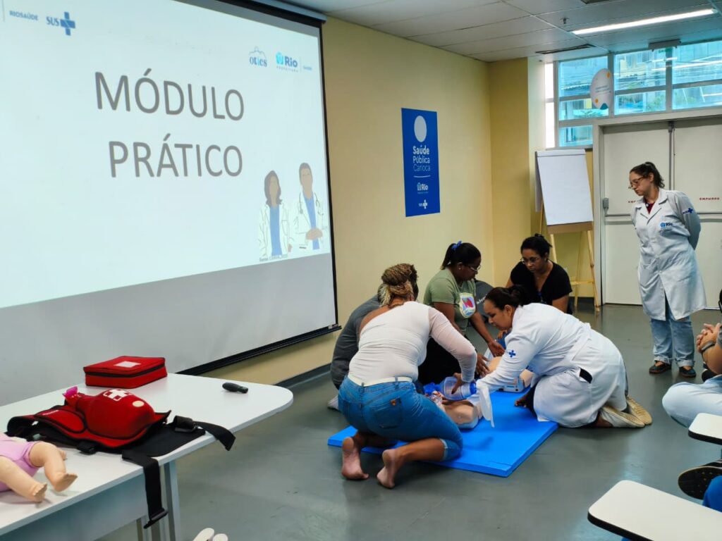Na tarde desta quarta-feira, dia 4 de Fevereiro de 2026, a 15ª turma do Curso de Suporte Básico à Vida em Emergências (SBVE) de 2026 foi ministrada no Auditório do Hospital Municipal do Evandro Freire. A capacitação é fruto da parceria entre a Rede OTICS/SMS-RJ e o Núcleo de Formação Profissional, Pesquisa e Educação Permanente (NUFOPEP/RioSaúde).