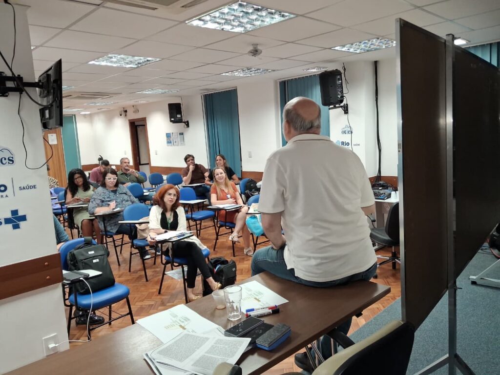 A atividade aconteceu no Auditório Barbara Starfield, na OTICS-Rio Sede, e teve como tema a disciplina “Metodologia da Pesquisa Social em Saúde Pública”, com o objetivo de estudar e aplicar métodos científicos para compreender como fatores sociais, econômicos, culturais e políticos influenciam a saúde, a doença e o acesso aos serviços de saúde.