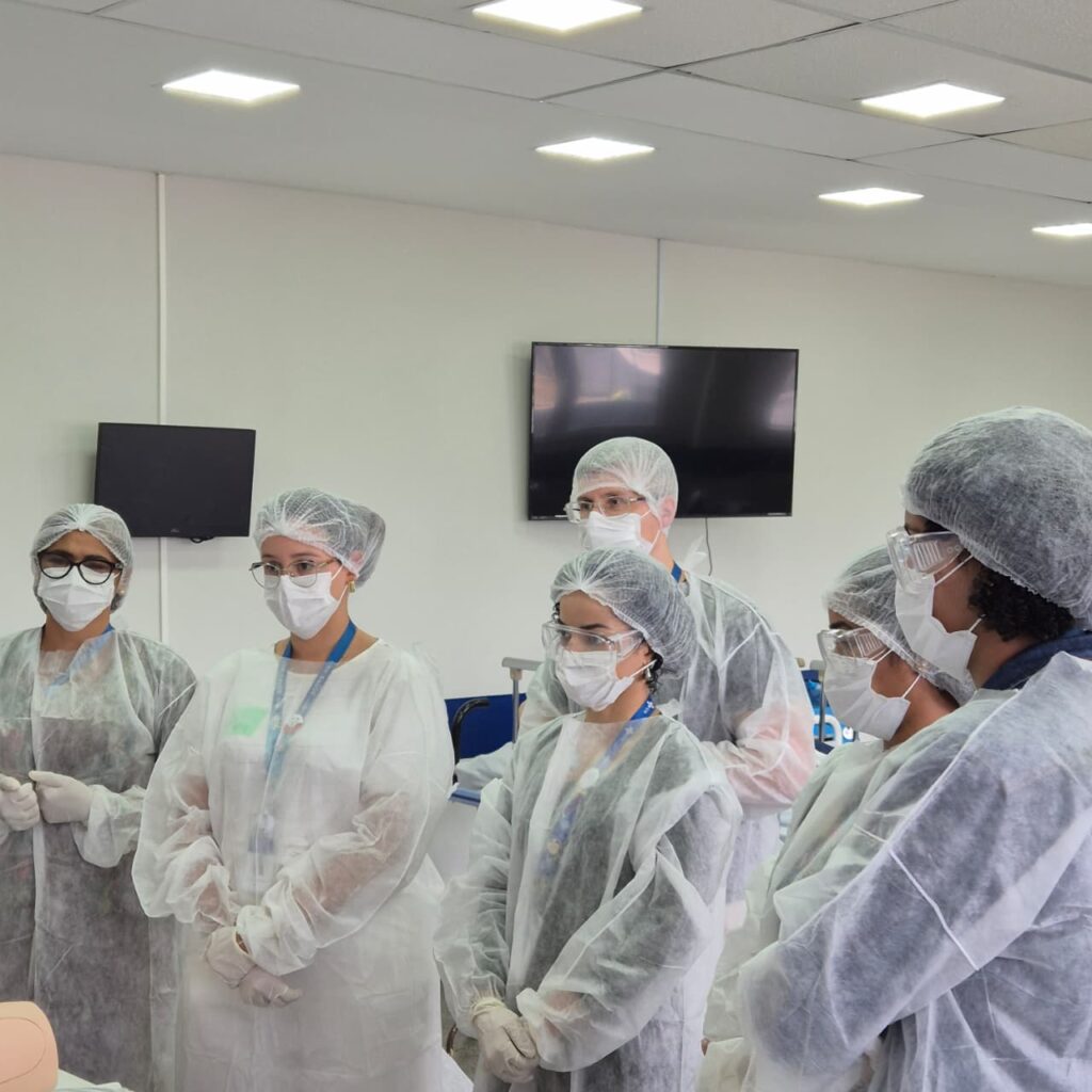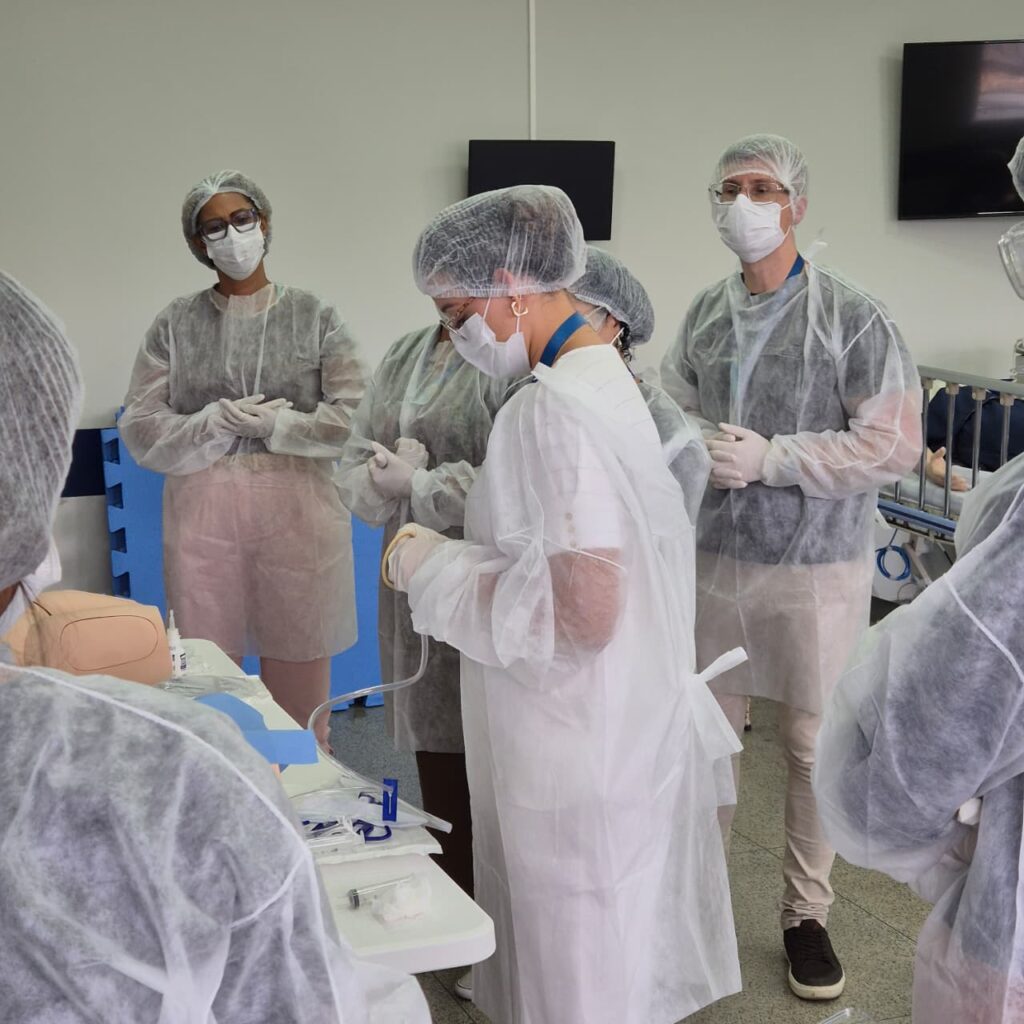 Além disso, os participantes tiveram a oportunidade de realizar treinamento prático em manequins específicos, representando anatomias masculinas e femininas adultas.