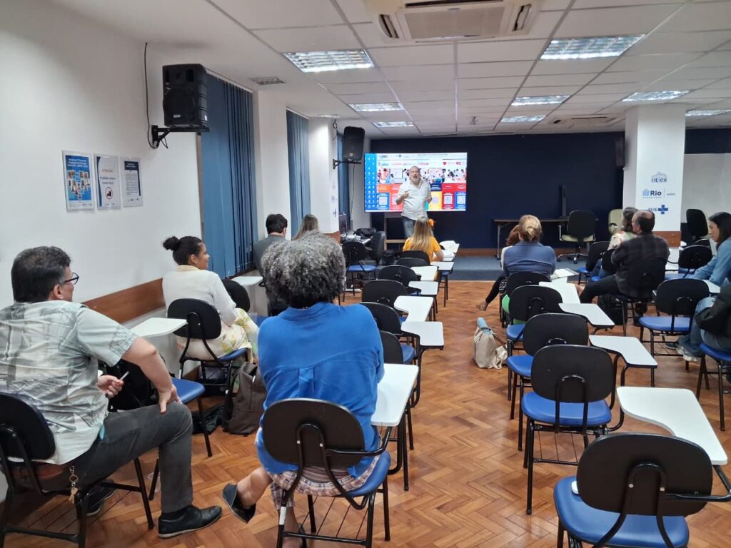 A atividade aconteceu no Auditório Barbara Starfield, na OTICS-Rio Sede, e teve como tema a disciplina “Metodologia da Pesquisa Social em Saúde Pública”, com o objetivo de estudar e aplicar métodos científicos para compreender como fatores sociais, econômicos, culturais e políticos influenciam a saúde, a doença e o acesso aos serviços de saúde.