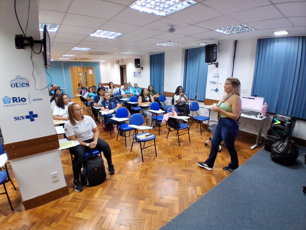 Na manhã do dia 24/02, profissionais de saúde das unidadades da CAP 1.0 reuniram-se no auditório Barbara Starfield da OTICS Rio – Sede para um treinamento de Shantala que é uma técnica de massagem milenar indiana para bebês. Que alivia as cólicas no recém -nascido, fortalece os laços afetivos entre mãe e filho, ajuda a relaxar e deixar o bebê bem calminho na hora de dormir.