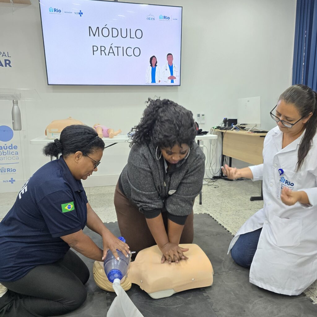 A 24ª turma do Curso de Suporte Básico à Vida em Emergências (SBVE) foi ministrada na manhã desta quinta-feira, 26 de fevereiro de 2026, na Sala Multiuso e no Laboratório de Habilidades da OTICS-RIO Souza Aguiar. Como fruto da parceria entre a Rede OTICS/SMS-RJ e o Núcleo de Formação Profissional, Pesquisa e Educação Permanente (NUFOPEP/RioSaúde).