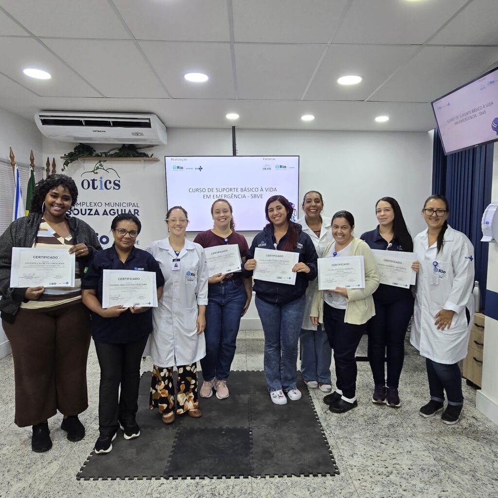 A 24ª turma do Curso de Suporte Básico à Vida em Emergências (SBVE) foi ministrada na manhã desta quinta-feira, 26 de fevereiro de 2026, na Sala Multiuso e no Laboratório de Habilidades da OTICS-RIO Souza Aguiar. Como fruto da parceria entre a Rede OTICS/SMS-RJ e o Núcleo de Formação Profissional, Pesquisa e Educação Permanente (NUFOPEP/RioSaúde).