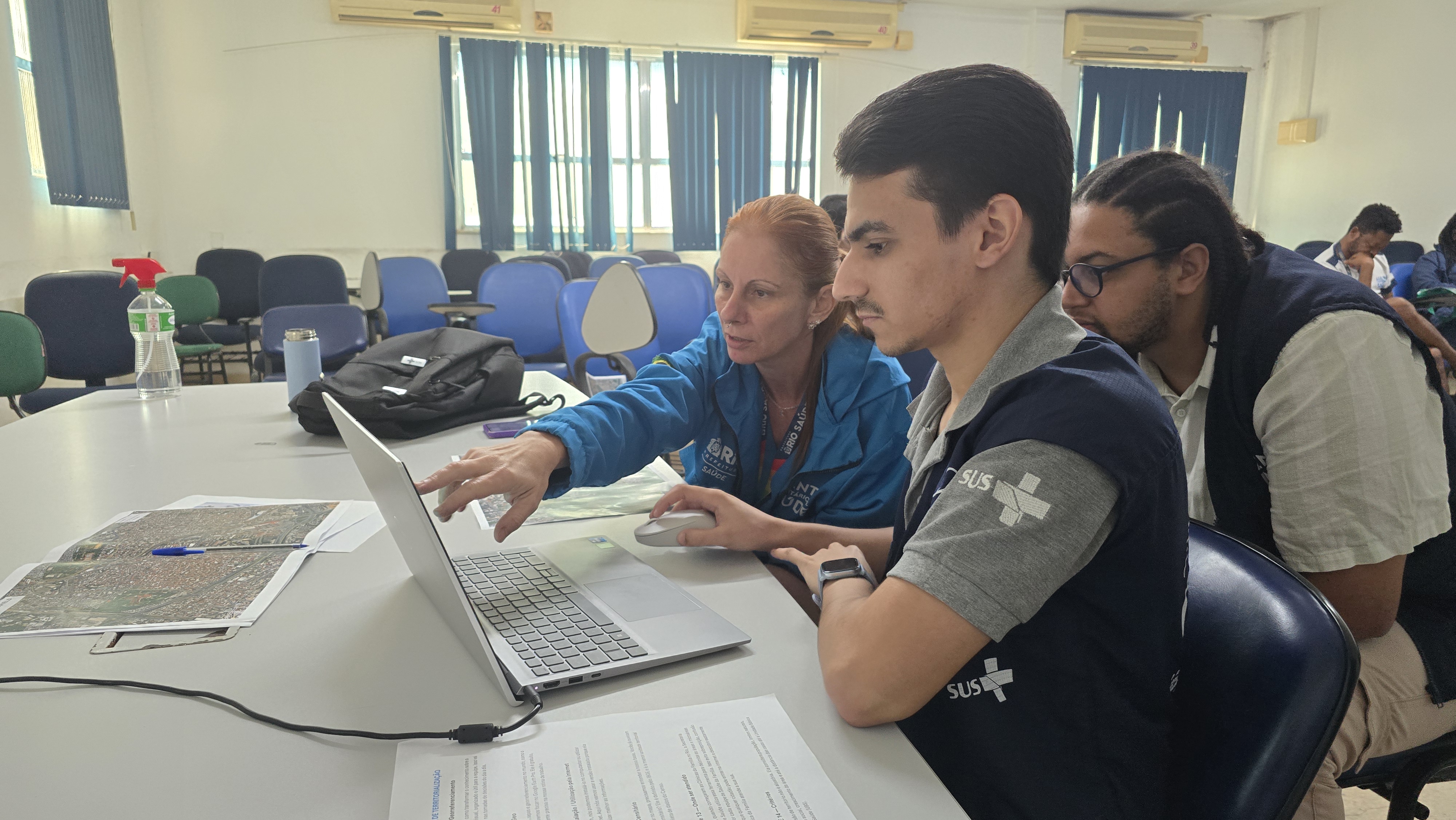 Durante a atividade é apresentado o Google Earth Pro para os Agentes Comunitários de Saúde (ACS) da unidade, que é um recurso importante para a territorialização. Este software é utilizado na demarcação das microáreas, uma ferramenta estratégica para o mapeamento e georreferenciamento no âmbito da saúde.