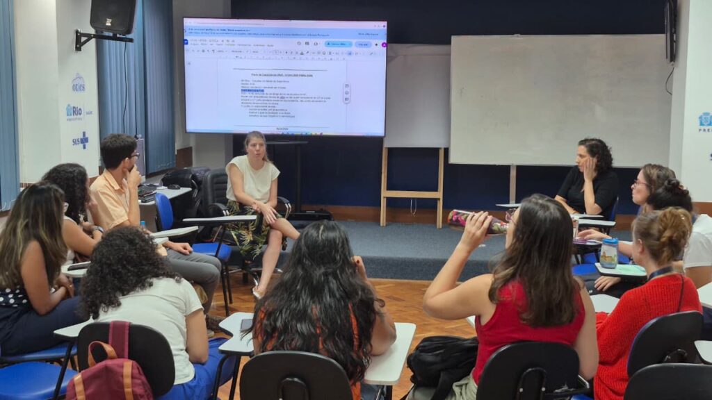 Integrantes do Grupo de Trabalho (GT) Abordagem Comunitária do Programa de Residência em Medicina de Família e Comunidade (PRMFC) reuniram-se nesta quarta-feira, 18/03, no Auditório Barbara Starfield do OTICS – Rio Sede. O Grupo de Trabalho de Abordagem Comunitária foca em fortalecer o vínculo entre profissionais de saúde e a comunidade, promovendo a participação ativa da população no cuidado com a saúde. Através de práticas colaborativas e valorização do conhecimento local, busca-se garantir um atendimento mais equitativo e acessível.