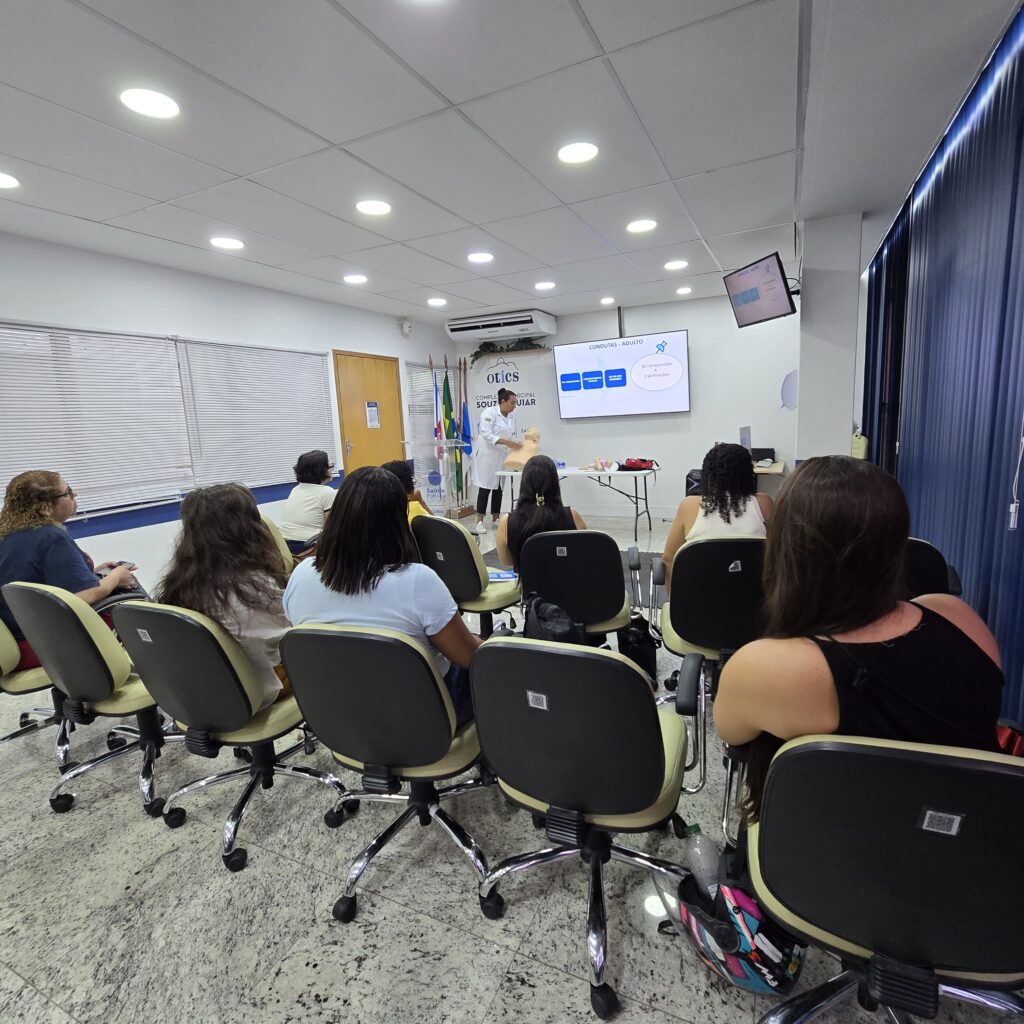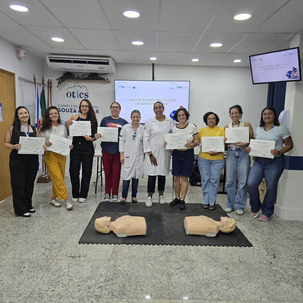 A 36ª turma do Curso de Suporte Básico à Vida em Emergências (SBVE) foi ministrada na tarde desta quinta-feira, 19 de março de 2026, na Sala Multiuso da Estação OTICS-RIO Souza Aguiar. Como fruto da parceria entre a Rede OTICS/SMS-RJ e o Núcleo de Formação Profissional, Pesquisa e Educação Permanente (NUFOPEP/RioSaúde).