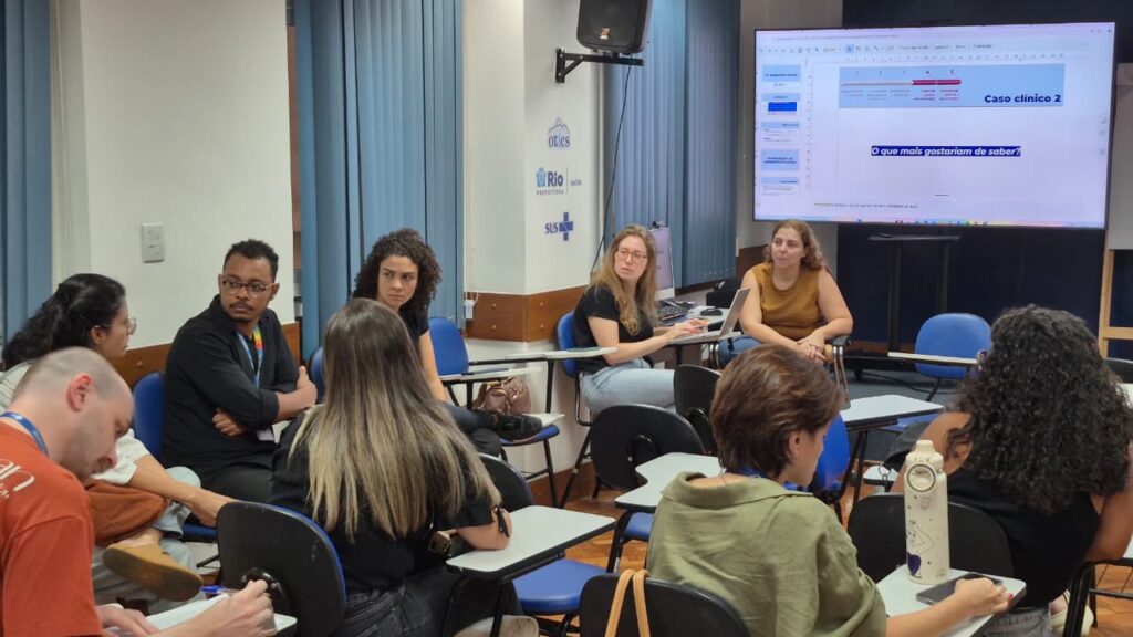 Integrantes do Grupo de Trabalho (GT) Raciocínio Clínico do Programa de Residência em Medicina de Família e Comunidade (PRMFC) reuniram-se nesta quarta-feira, 01/04, no Auditório Barbara Starfield do OTICS – Rio Sede. Raciocínio clínico é  um processo estruturado que o profissional utiliza para compreender, analisar e intervir nos problemas de saúde das pessoas, famílias e comunidades.  Estiveram presentes residentes e preceptores do programa e a reunião foi conduzida pela preceptora do PRMFC Olívia Barra.