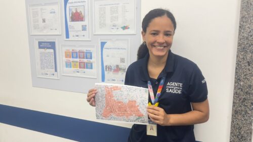 Nesta segunda-feira, 6 de Abril de 2026, a Agente Comunitária de Saúde (ACS) da Equipe de Saúde da Família Francisca Matos, Taiana Ferreira, do CMS Madre Teresa de Calcutá, esteve presente na OTICS-Rio Penha para a segunda etapa da Oficina de Territorialização.