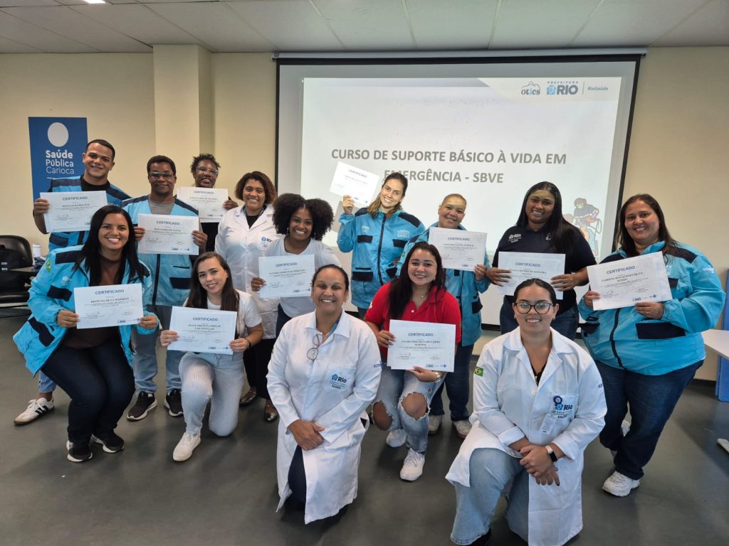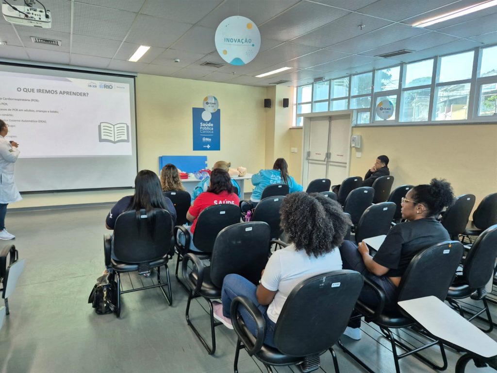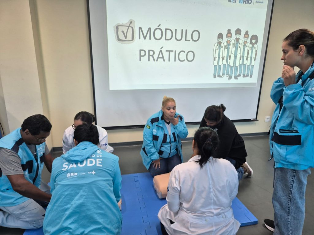 Na tarde desta quarta-feira, dia 15 de abril de 2026, a 42ª Turma do Curso de Suporte Básico à Vida em Emergências (SBVE) de 2026 foi ministrada no Auditório do Hospital Municipal do Evandro Freire. A capacitação é fruto da parceria entre a Rede OTICS/SMS-RJ e o Núcleo de Formação Profissional, Pesquisa e Educação Permanente (NUFOPEP/RioSaúde).