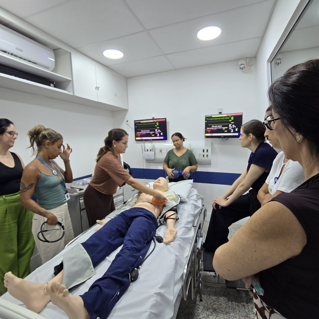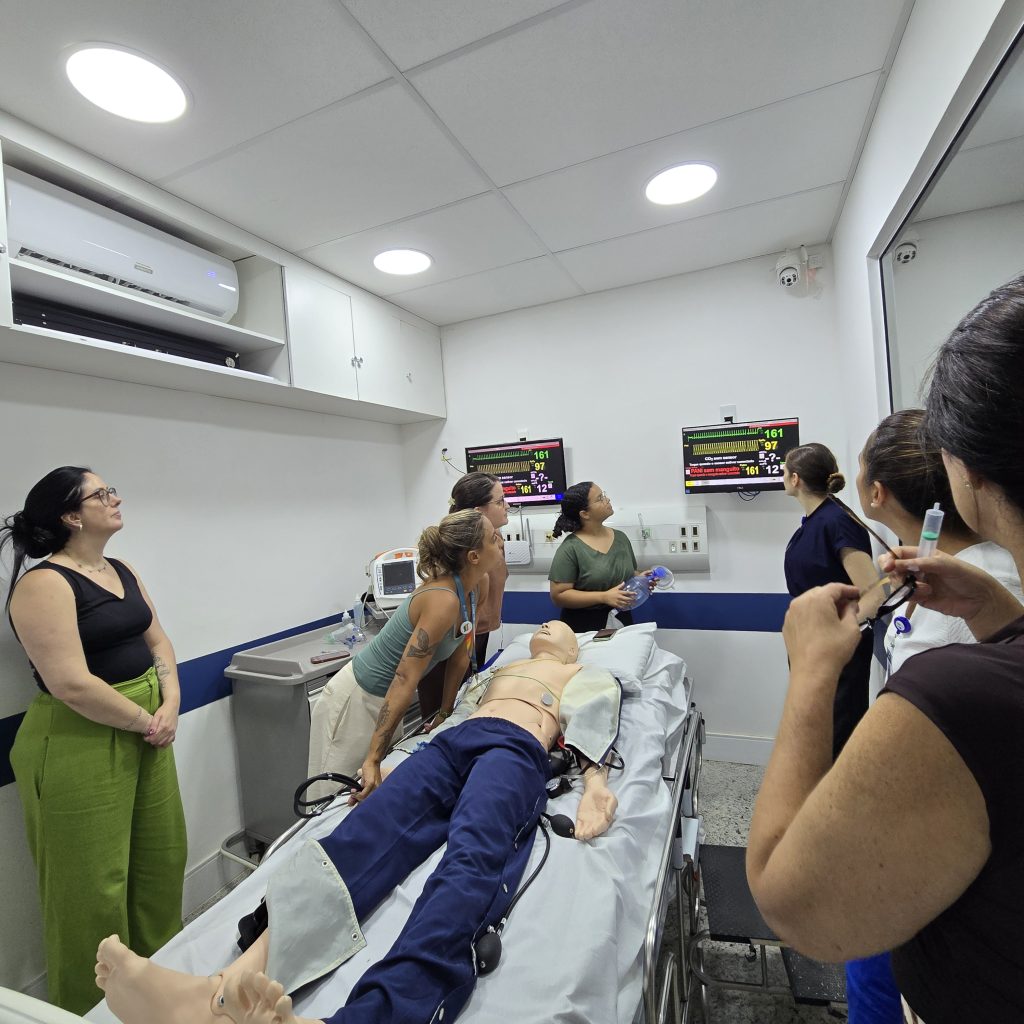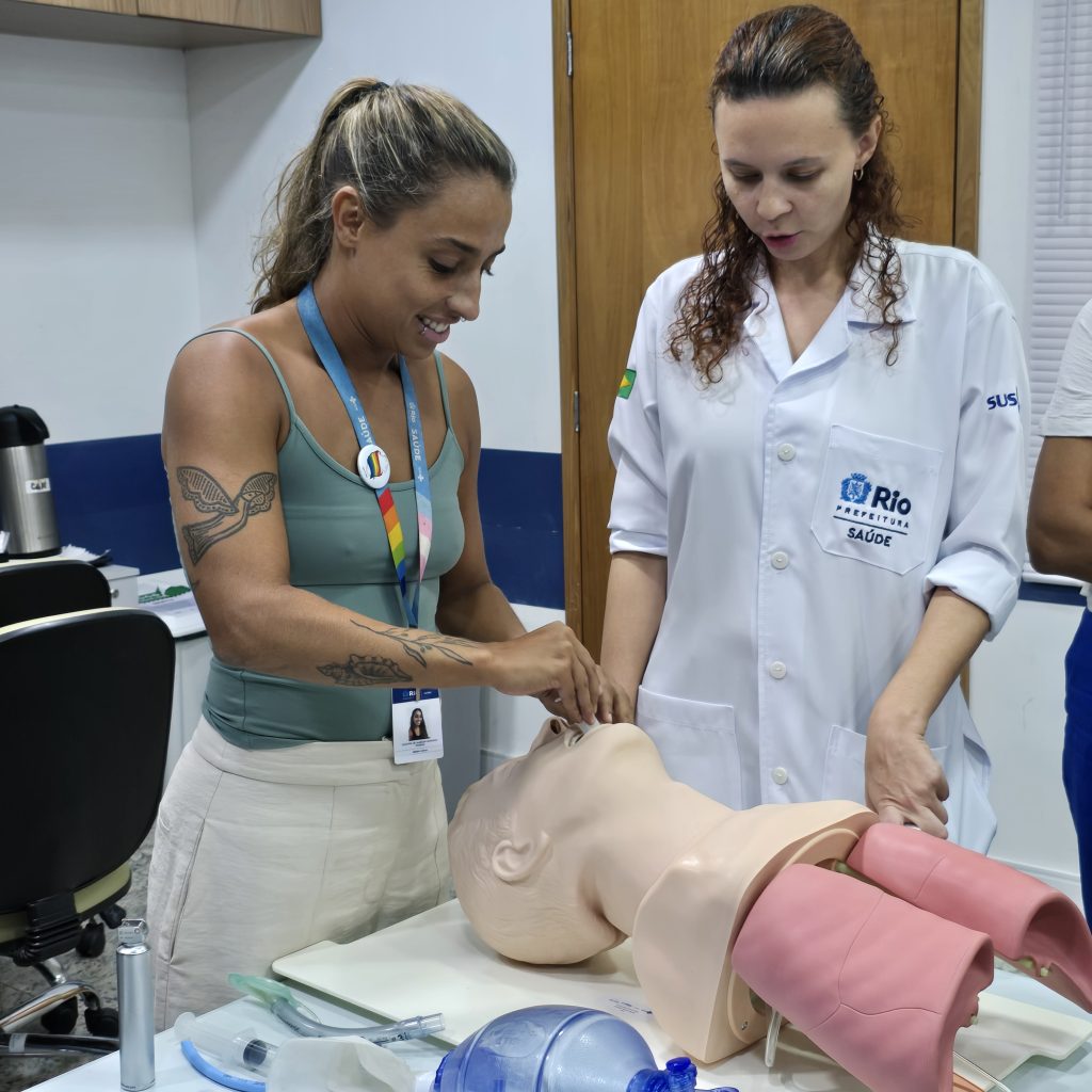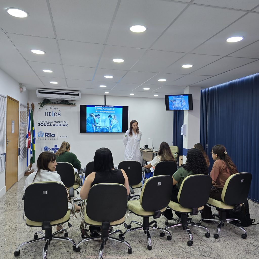 A 7ª turma do Curso de Suporte Avançado à Vida (SAVE-Rio) foi ministrada nesta quarta-feira, 15 de abril de 2026, na Sala Multiuso e no Box de Simulação da Estação OTICS-RIO Souza Aguiar, como fruto da parceria entre a Rede OTICS/SMS-RJ e o Núcleo de Formação Profissional, Pesquisa e Educação Permanente (NUFOPEP/RioSaúde).