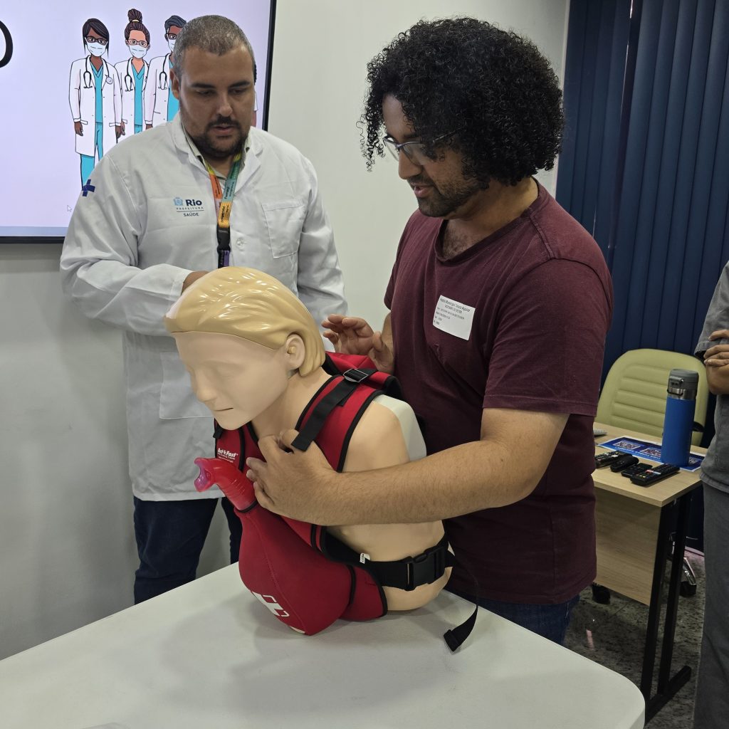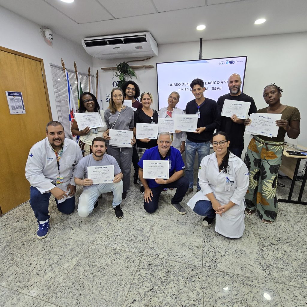 A 43ª turma do Curso de Suporte Básico à Vida em Emergências (SBVE) foi ministrada na manhã desta sexta-feira, 17 de abril de 2026, na Sala Multiuso e Laboratório de Habilidades da Estação OTICS-RIO Souza Aguiar. Como fruto da parceria entre a Rede OTICS/SMS-RJ e o Núcleo de Formação Profissional, Pesquisa e Educação Permanente (NUFOPEP/RioSaúde).Estiveram presentes 10 profissionais da saúde, sendo todos profissionais são lotados nas seguintes unidades: Hospital Municipal Souza Aguiar, Hospital Ronaldo Gazolla, Hospital do Andaraí, Hospital Municipal Lourenço Jorge e SMS Centro Carioca de Diagnóstico e Tratamento por ImagemA turma desenvolveu conhecimentos em: