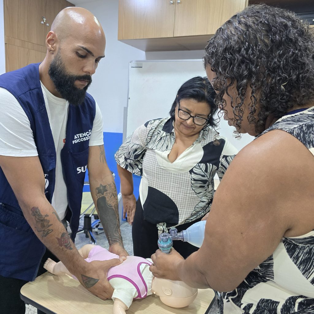 A 45ª Turma do Curso de Suporte Básico à Vida em Emergências (SBVE) foi ministrada na manhã desta sexta-feira, 24 de abril de 2026, na Sala Multiuso da Estação OTICS-RIO Souza Aguiar. Como fruto da parceria entre a Rede OTICS/SMS-RJ e o Núcleo de Formação Profissional, Pesquisa e Educação Permanente (NUFOPEP/RioSaúde).Estiveram presentes 6 profissionais da saúde, sendo todos lotados nas seguintes unidades: CF DR Myrtes Amorelli Gonzaga, CAPS III Manoel de Barros e CAPS Profeta GentilezaA turma desenvolveu conhecimentos em: