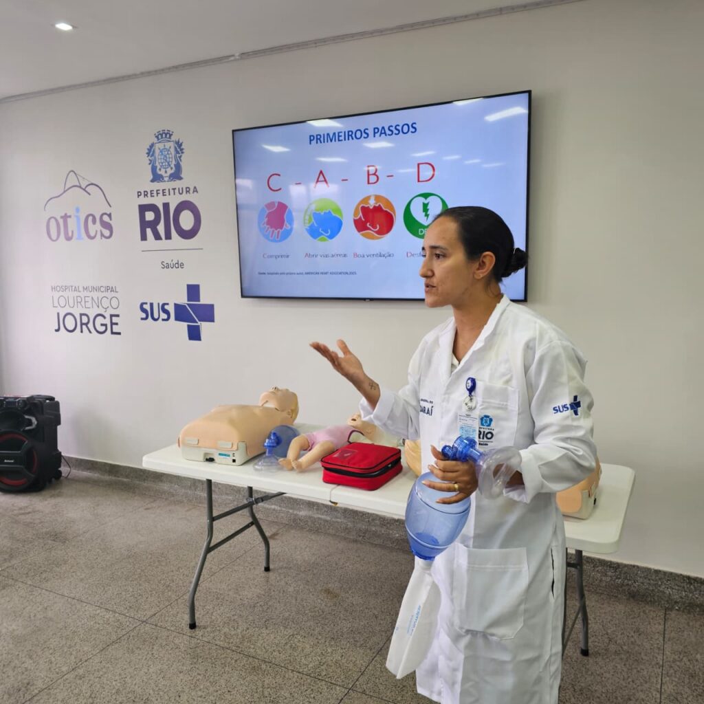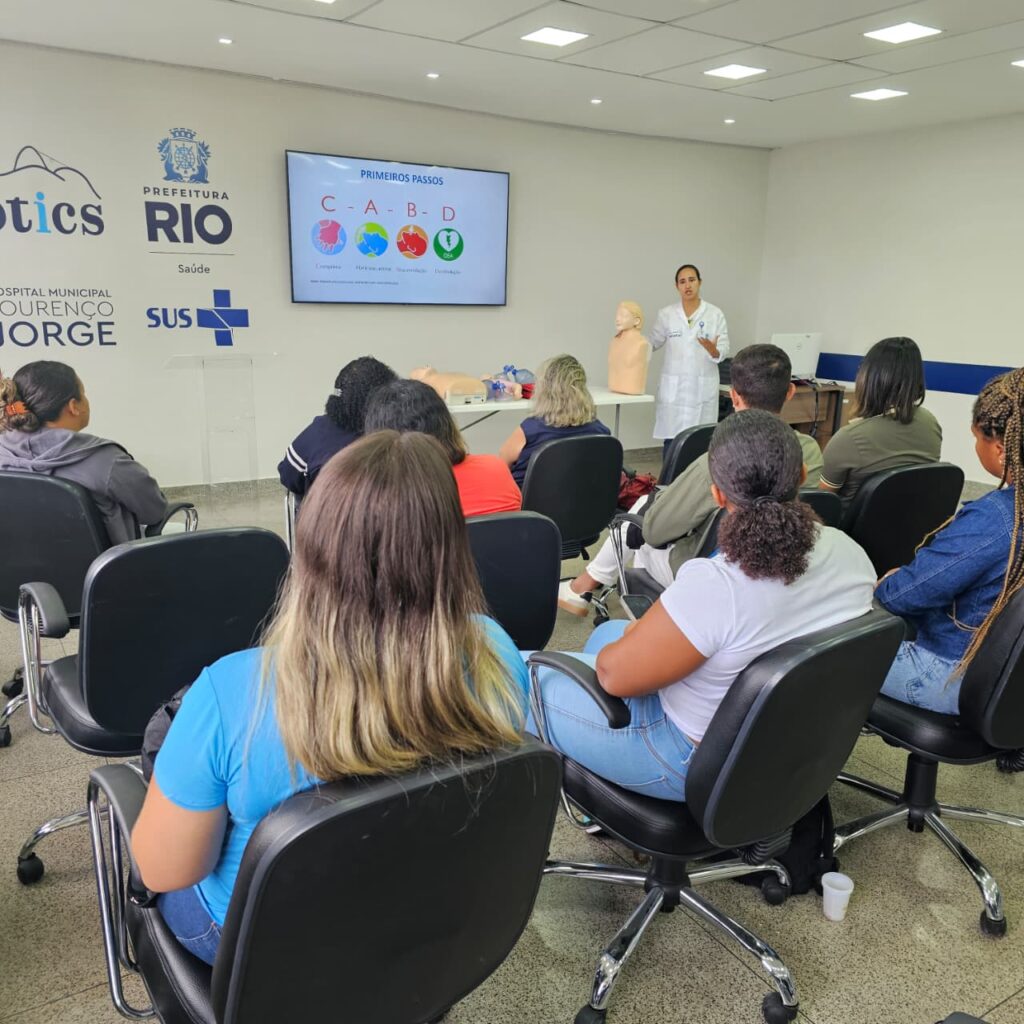 Nesta tarde, dia 06 de Janeiro de 2026, a 2ª turma do Curso de Suporte Básico à Vida em Emergências (SBVE) de 2026 foi ministrada na Sala Multiuso da OTICS-Rio Lourenço Jorge. A capacitação é fruto da parceria entre a Rede OTICS/SMS-RJ e o Núcleo de Formação Profissional, Pesquisa e Educação Permanente (NUFOPEP/RioSaúde).