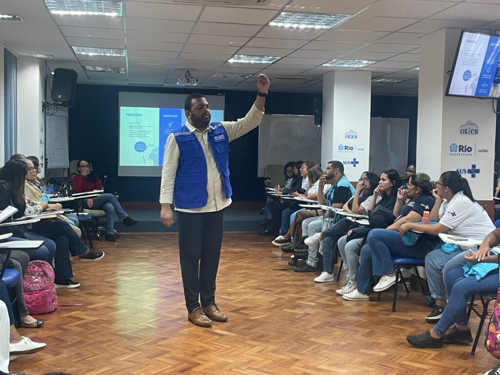 Profissionais de saúde da Atenção Primária à Saúde (APS) reuniram-se nesta segunda-feira, 10/11, no auditório Barbara Starfield do OTICS-Rio Sede para uma oficina sobre cuidado à saúde da população migrante e refugiada atendida pela APS no município do Rio de Janeiro. A atividade contou com as apoiadoras Raquel Oliveira e Fabiana Chicralla, Fernanda da Guia, do Ministério da Saúde, Ana Beatriz, assistente social do Centro de Referência e Atendimento Para Imigrantes (CRAI-Rio), Camila Athayde, psicóloga do Núcleo de Equidade Étnico-racial em Saúde (NEReS), Saulo Albuquerque, da Organização Internacional Para as Migrações (OIM) e Karla Ellwein, Coordenadora de Integração Local do Programa de Atendimento a Refugiados e Solicitantes de Refúgio da Cáritas – Rio de Janeiro.